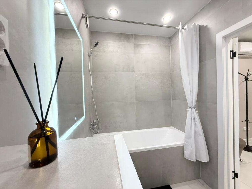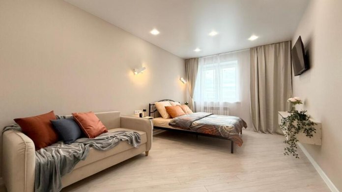 Если Вы любите чистоту и комфорт - Вам сюда. Погрузиться в атмосферу праздника и отличного настроения можно уже сегодня, качественный сервис! Комфортабельная квартира в новом доме, с евро ремонтом и стильным дизайном.️ В Вашем распоряжении: большая двуспальная кровать с мягкими подушками и двуспальный диван, утюг, гладильная доска, сушилка для белья, стиральная машина. Есть все необходимое для проживания! Кухня оснащена всеми необходимыми бытовыми приборами (холодильник, микроволновка, электрический чайник, духовка) и столовыми принадлежностями (кастрюли, сковорода, кружки, тарелки, столовые приборы). Цифровое телевидение, СМАРТ TV, высокоскоростной безлимитный интернет (wi-fi). Просторная ванная комната. Балкон застеклён (разрешено курение только на балконе!).