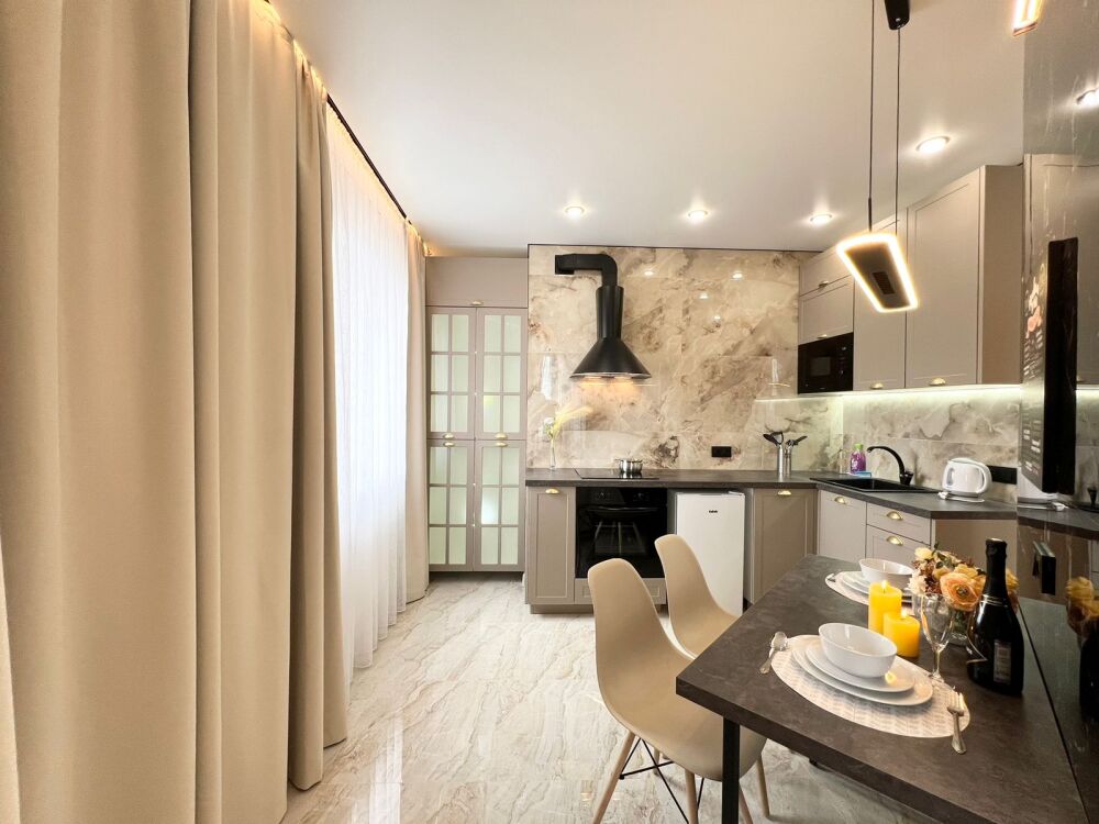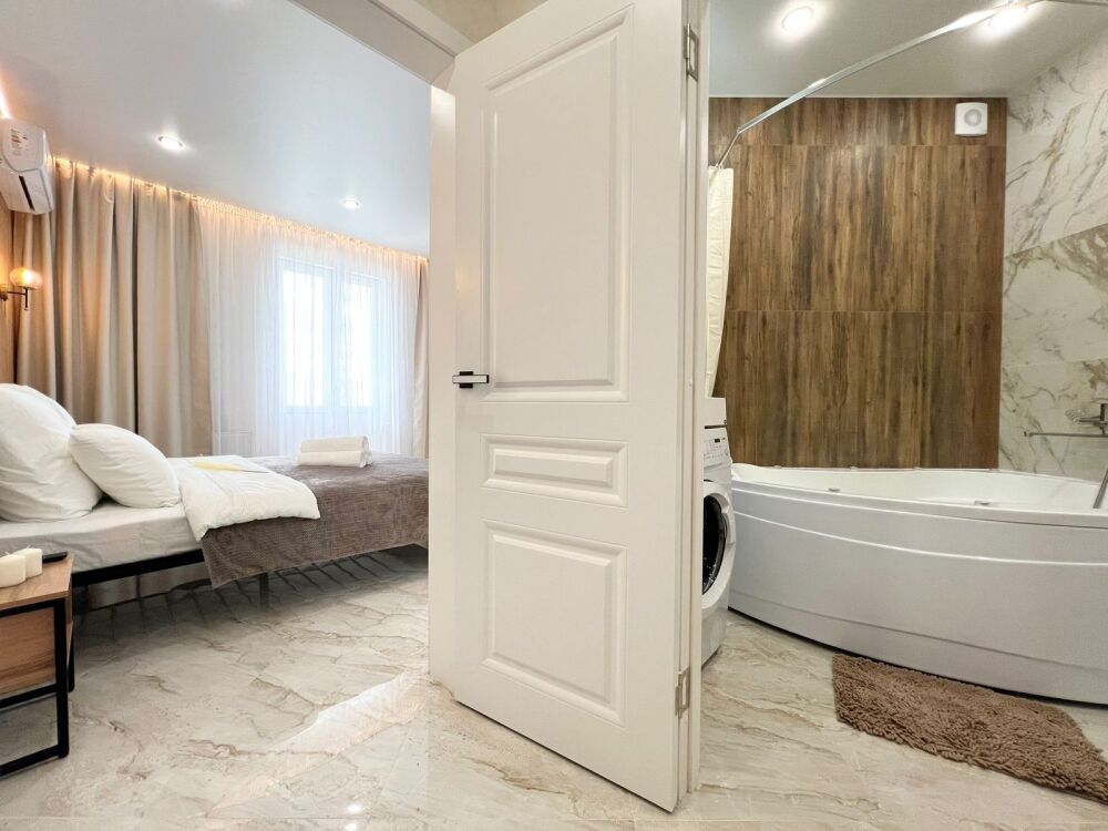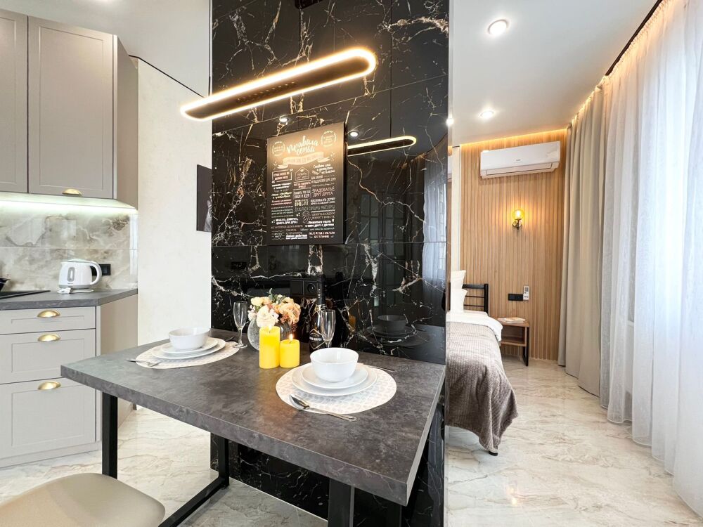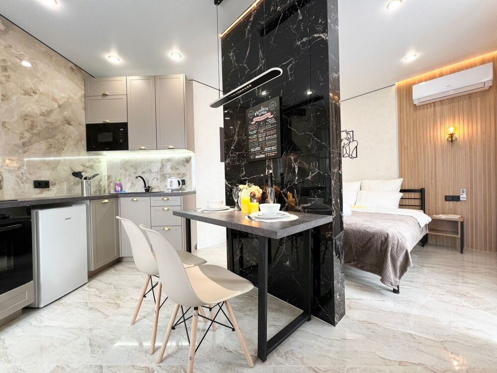 Сдается квартира-студия в тихом центре, в новом многоэтажном домe 2023 года постройки, расположенном в 5 минутах езды на машине от центра города. С новым и качественным ремонтом.
