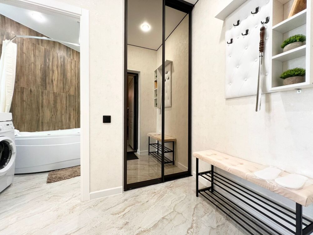 ️В квартире современная мебель, новая сантехника, натяжные потолки, стеклопакеты, хорошая шумоизоляция, фен, утюг, гладильная доска, сушилка для белья, стиральная машина. Есть все необходимое для проживания. Кухня оснащена всеми необходимыми бытовыми приборами (холодильник, микроволновка, электрический чайник) и столовыми принадлежностями (кастрюли, сковорода, кружки, тарелки, столовые приборы). Цифровое СМАРТ-телевидение, высокоскоростной безлимитный интернет (wi-fi). Ванная и туалет – кафель. Предоставляем комплекты постельного белья, махровые полотенца, одноразовые тапочки, набор гостиничной парфюмерии: шампунь, гель и мыло.