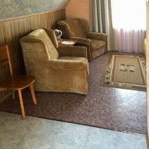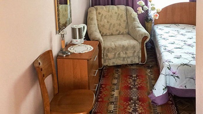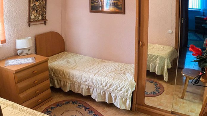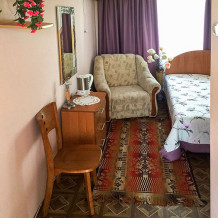 Для комфортного размещения в частном коттедже предназначены семь номеров различной вместимости. В номерах стандарт есть телевизор, кондиционер, санузел общий на два номера на этаже. В номерах улучшенных телевизор, холодильник, кондиционер, электрочайник и отдельный санузел. На первом этаже коттеджа имеется небольшая, но уютная и оборудованная всеми необходимыми принадлежностями кухня. Уборка номеров производится регулярно, смена постельного белья один раз в семь дней. В общее пользование гостям предоставляется гладильная доска с утюгом, стиральная машина, фен.