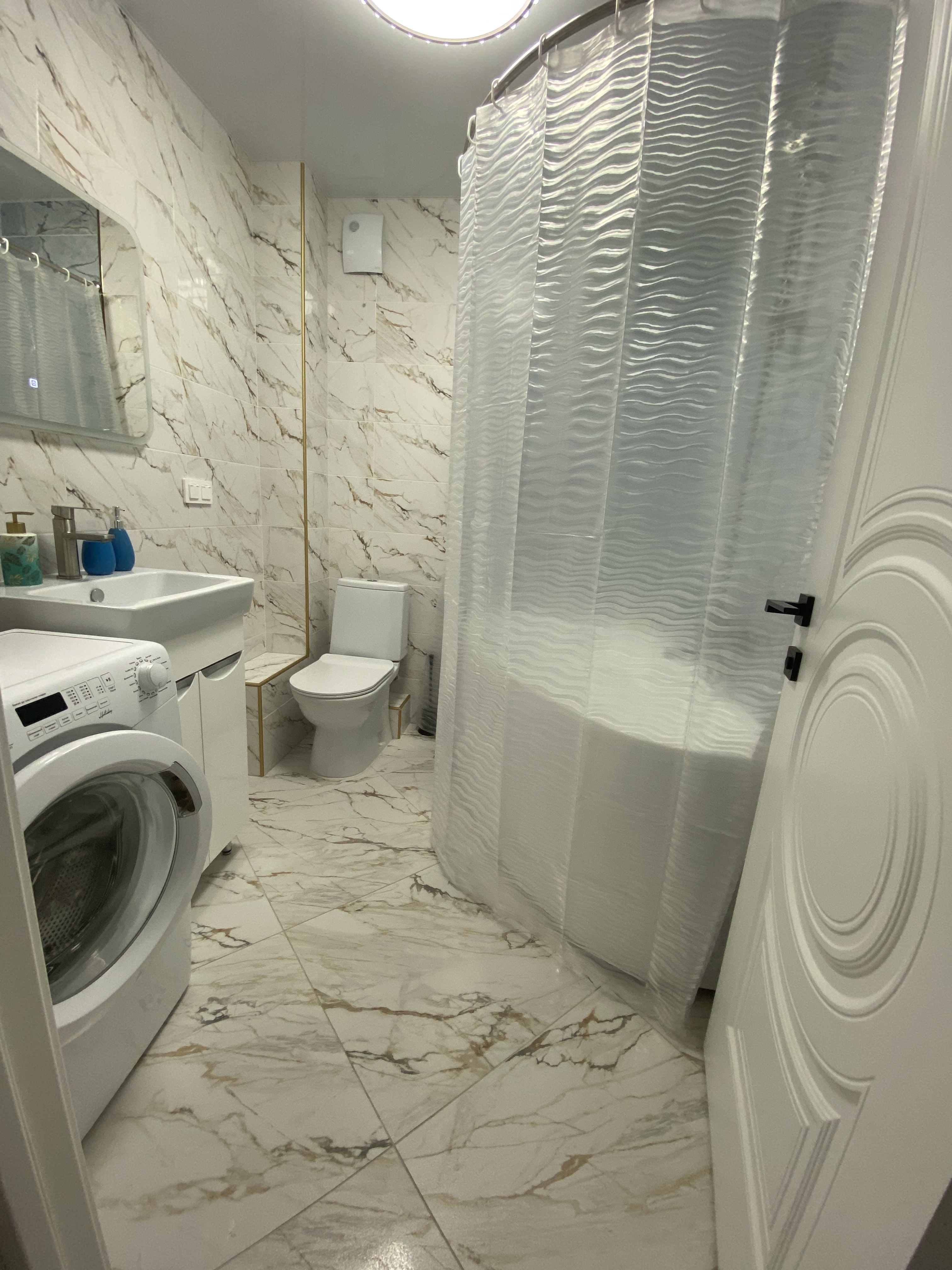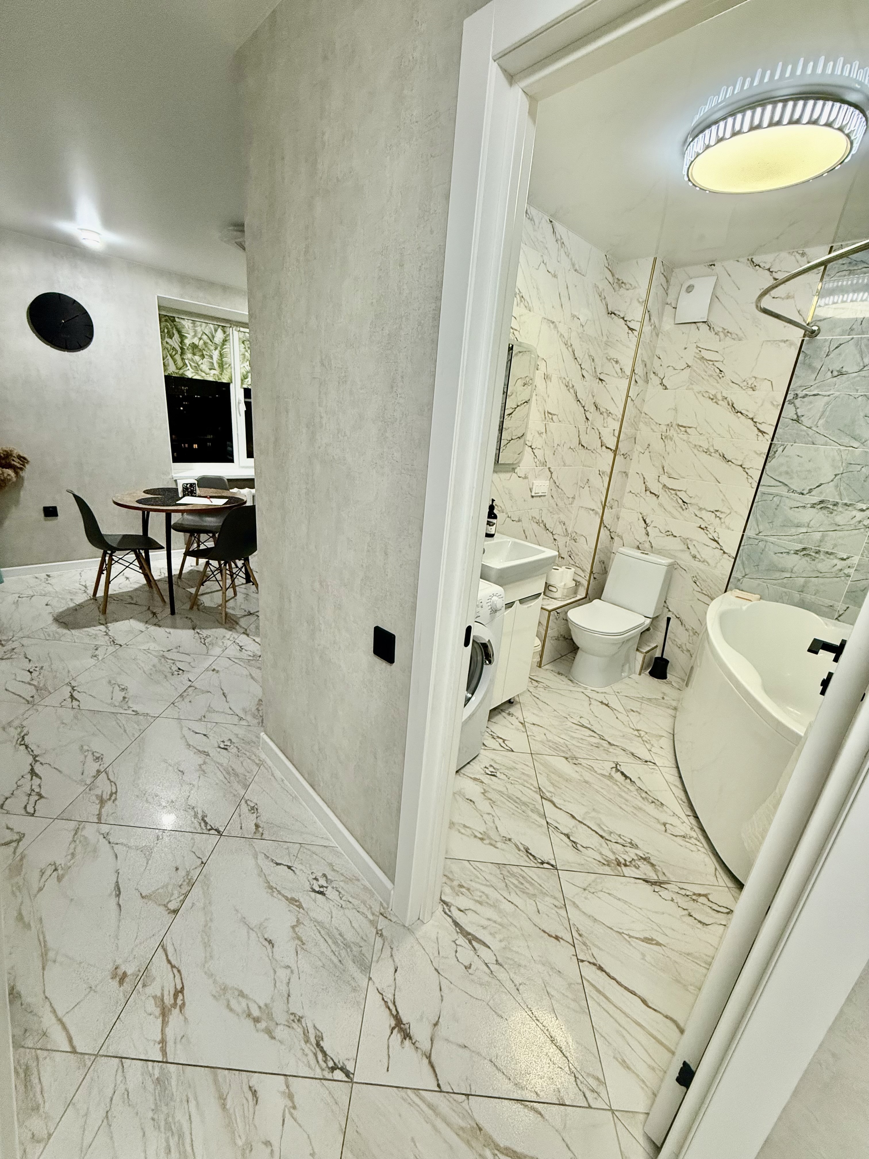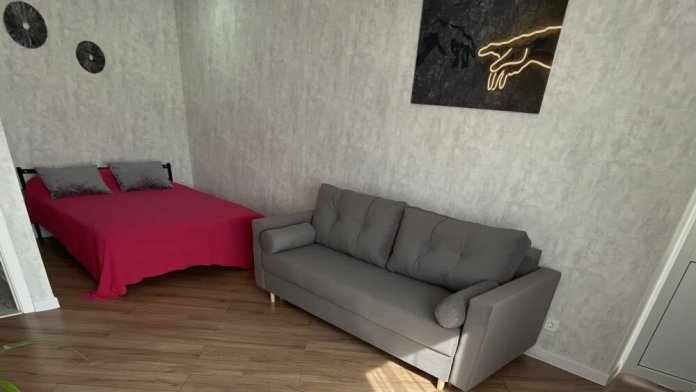 Есть всё необходимое для комфортного проживания: удобная большая кровать, сплит, телевизор, фен, посуда, полотенца, wi-fi.