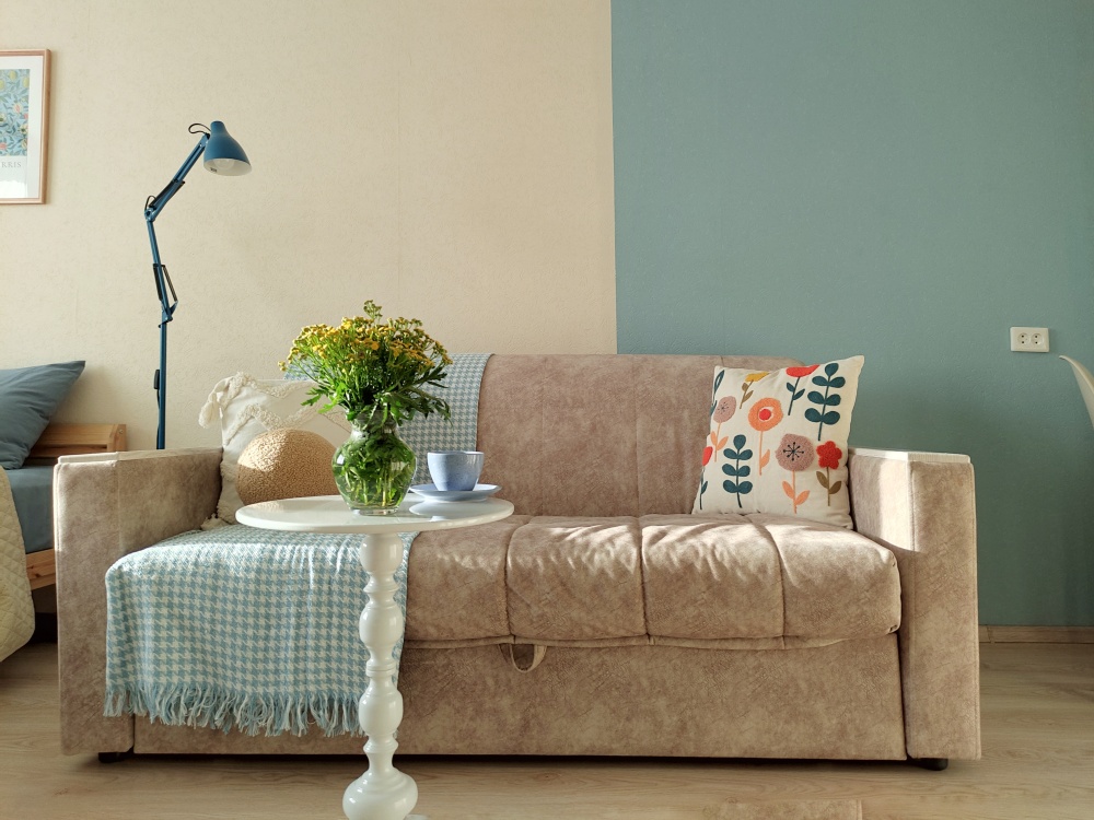 - вместимость до 4 человек (2+2: двуспальная кровать 160×200 + диван для двоих 140×200);