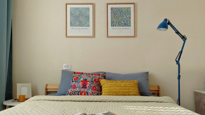 - современный интерьер с нежными пастельными оттенками и яркими акцентами;