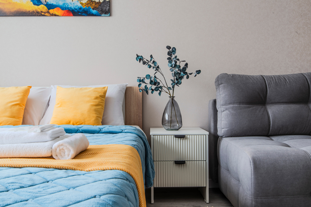 - Двуспальная кровать в гостиной.