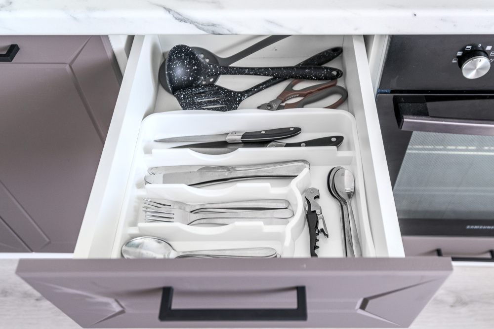 - Посуда, столовые приборы, кастрюли и сковороды.