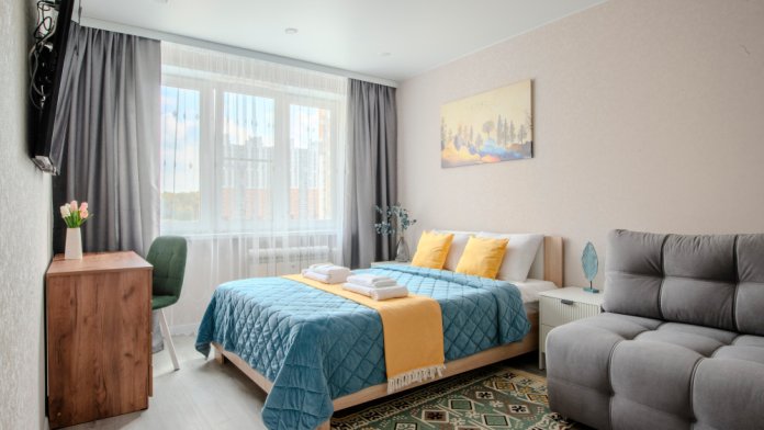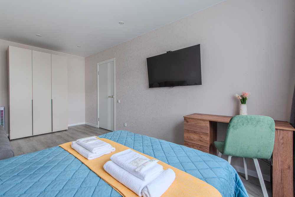 Апартаменты расположены в новом микрорайоне «Солнечный». Это чистый район в природной зоне.