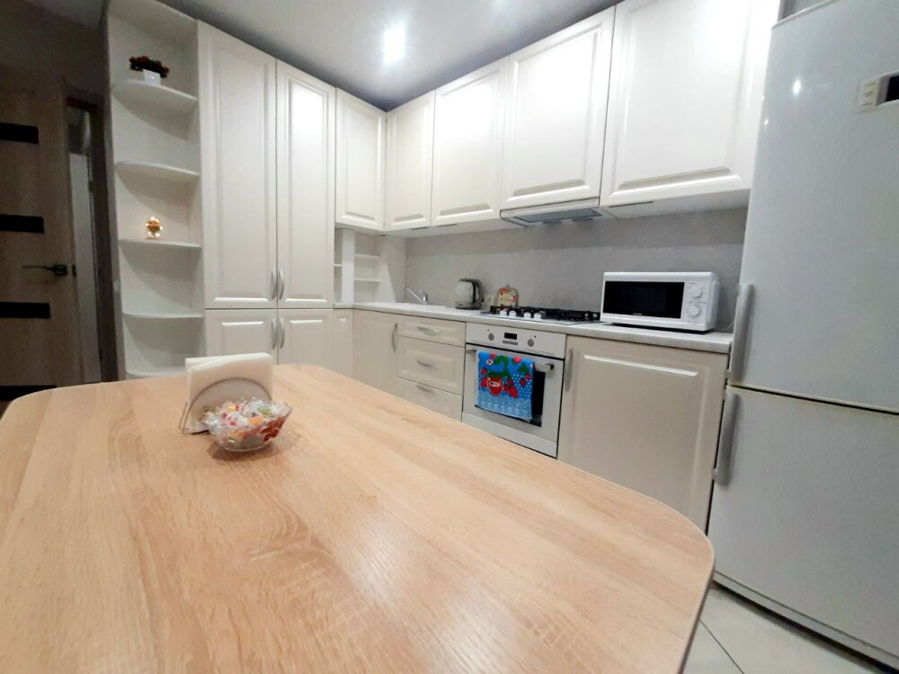 ️Просторная и современная кухня, выдержанная в позитивных тонах, дарит отличное настроение, и делает приятным и приготовление пищи, и саму трапезу, как в одиночестве, так и в семейном кругу. Кухонный гарнитур укомплектован всей нужной для длительного проживания бытовой техникой, разнообразной посудой и кухонными принадлежностями. Яркая обеденная зона располагает к принятию трапезы - как в домашних условиях.