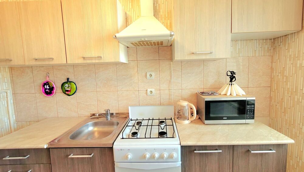 Светлая колоритная однокомнатная квартира с максимальным комфортом разместит до 4 персон гостей. Комфортная обстановка, удобная мебель и просторная кухня порадуют и приятно удивят любого гостя. Квартира расположена в спокойном районе в доме с уютным двором, находится в пешей доступности от Дворца Спорта «Юбилейный» и других необходимых объектов инфраструктуры.