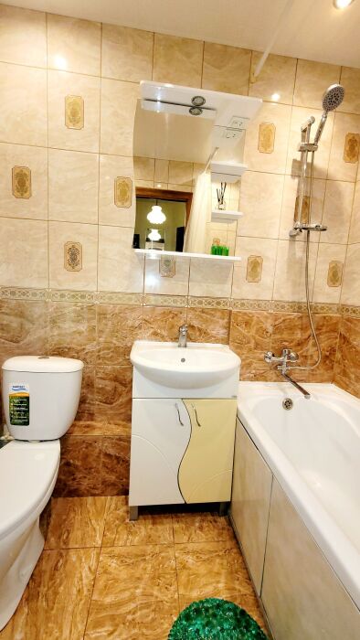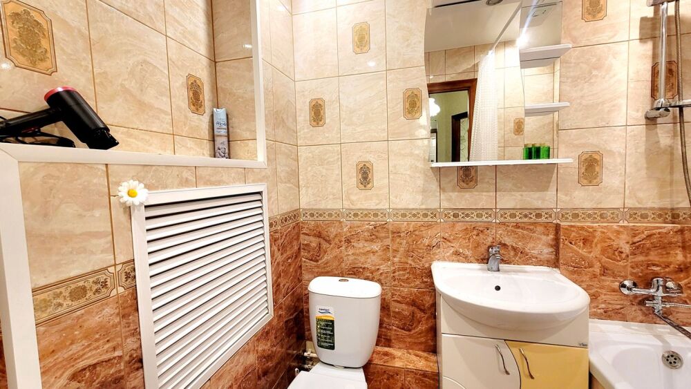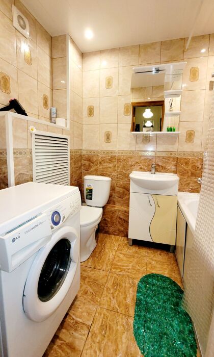 Санузел с новым ремонтом. К услугам гостей все необходимое для полноценного личного ухода: от стиральной машины-автомат до фена.