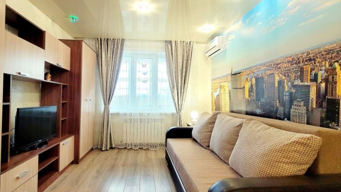 Светлая колоритная однокомнатная квартира с максимальным комфортом разместит до 4 персон гостей. Комфортная обстановка, удобная мебель и просторная кухня порадуют и приятно удивят любого гостя. Квартира расположена в спокойном районе в доме с уютным двором, находится в пешей доступности от Дворца Спорта «Юбилейный» и других необходимых объектов инфраструктуры. Правильно подобранная мебель делает комнату максимально подходящей для безмятежного отдыха. Большой ЖК-телевизор и Wi-Fi поможет провести досуг. Такие детали, как живописные картины и яркие интерьерные аксессуары радуют взгляд и дополняют обстановку совершенного комфорта.