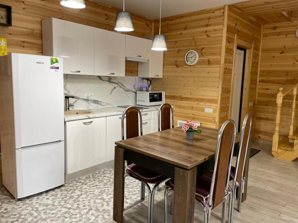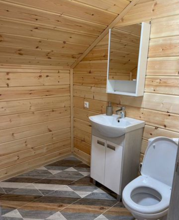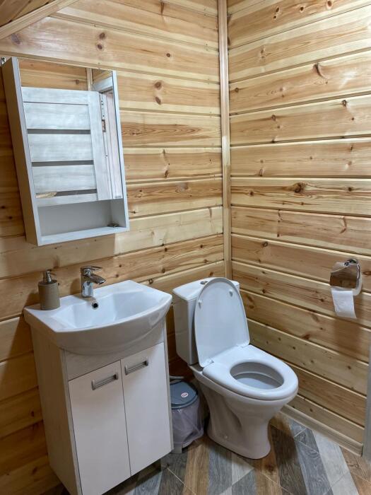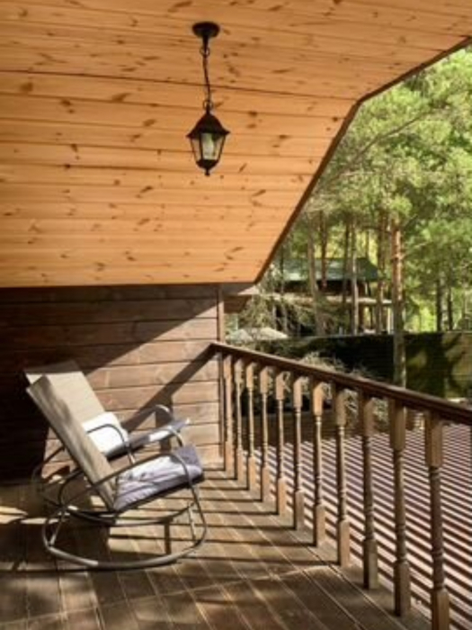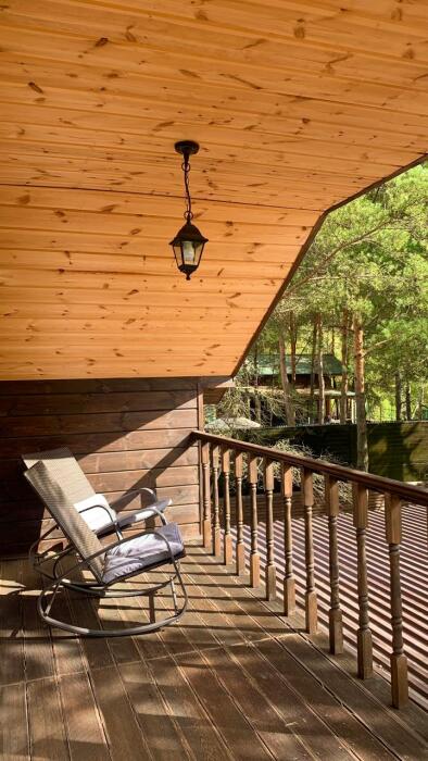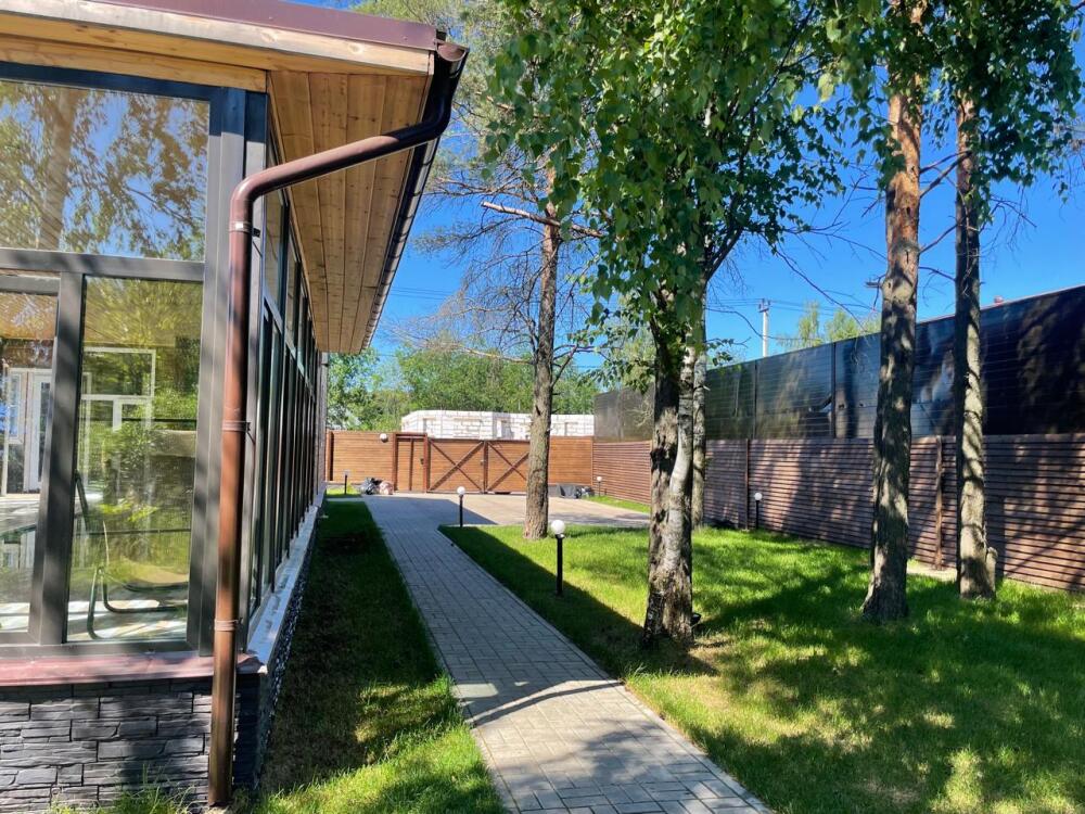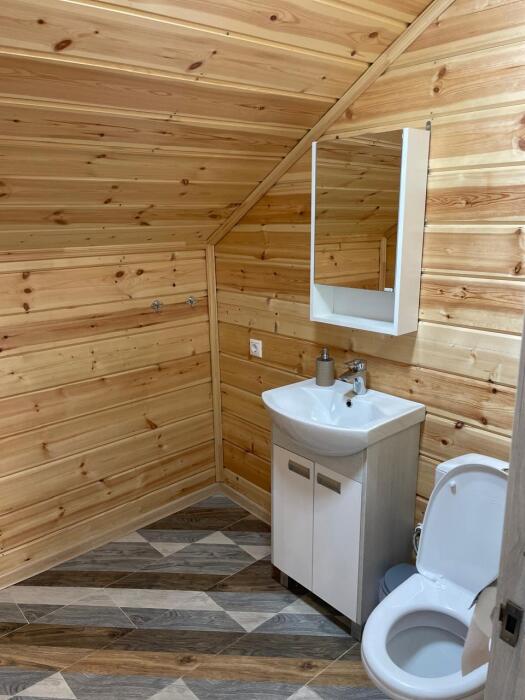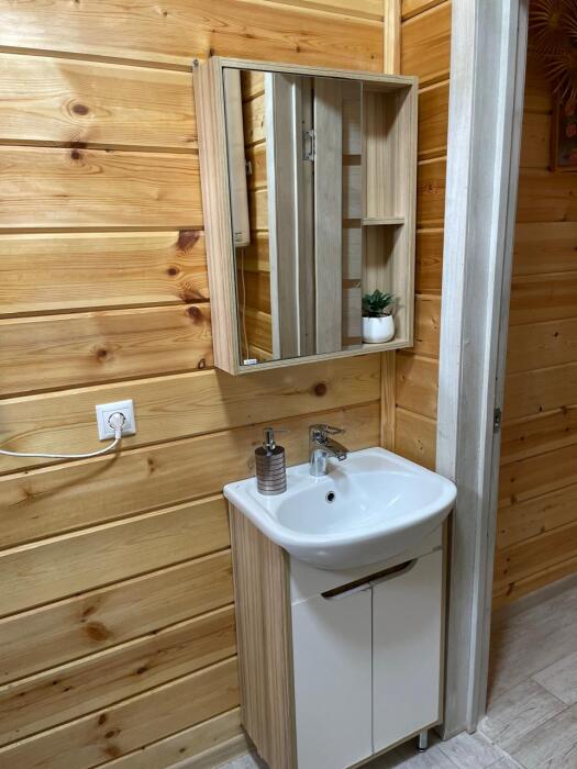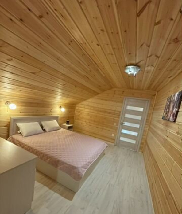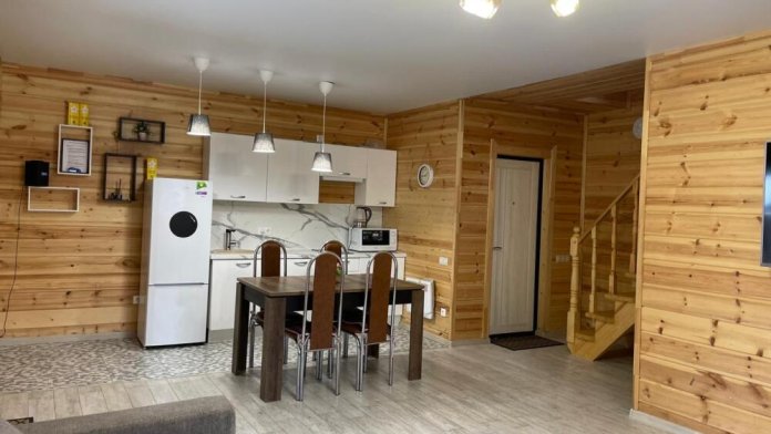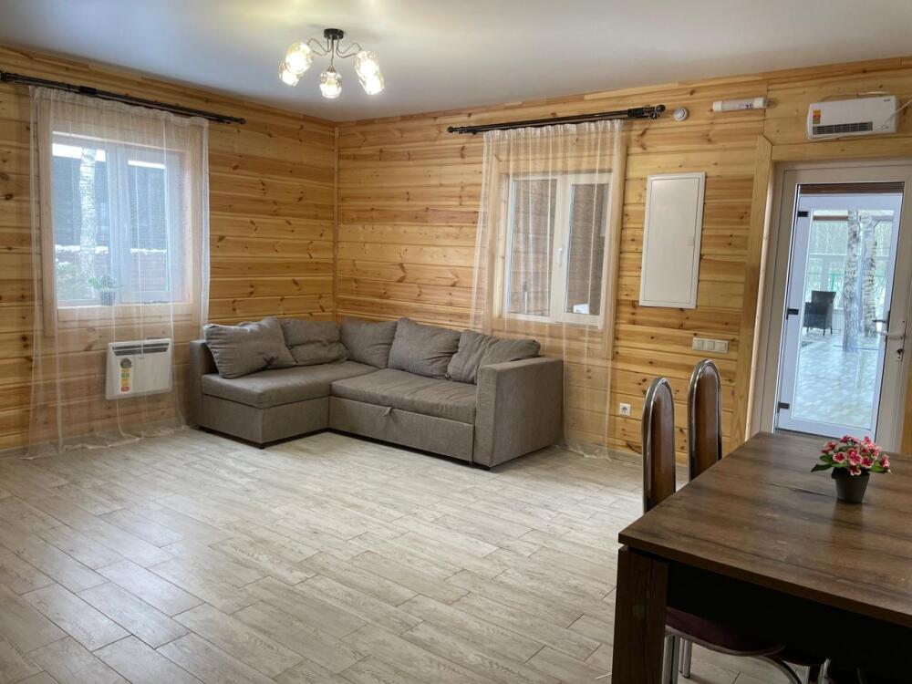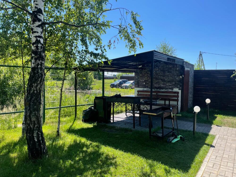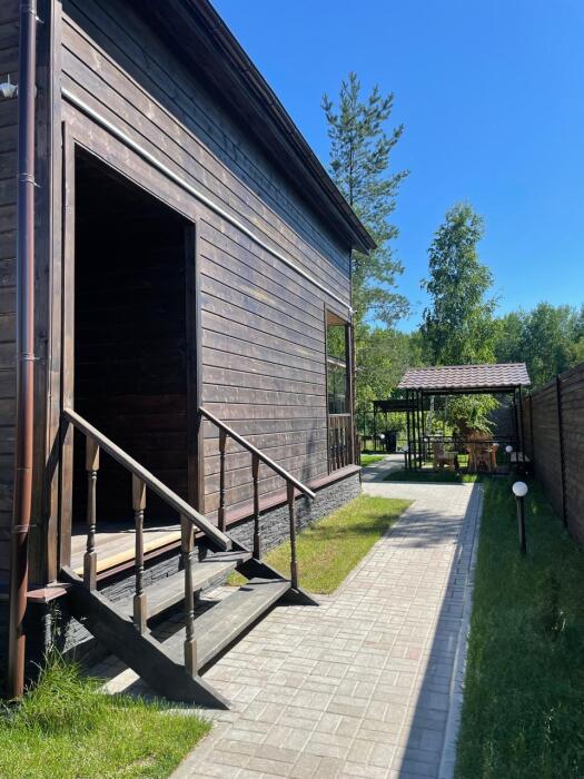 В коттедже имеется вся мебель, бытовая техника, кухонные принадлежности для комфортного проживания. Доступ в интернет - через WiFi. На территории участка имеется зона барбекю. В комплексе работает финская баня с бассейном, летним душем, шезлонгами. Территория граничит с небольшим водоемом: выход на него есть со двора.