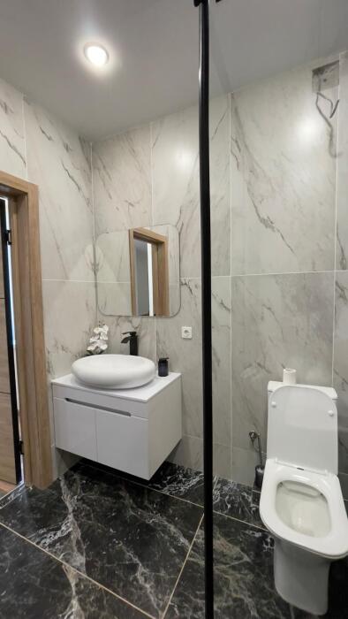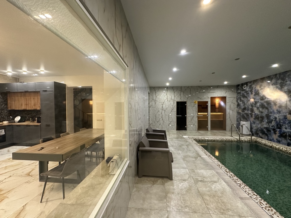- на первом этаже расположена гостевая смежная с кухней с выходом на бассейн и санузел,