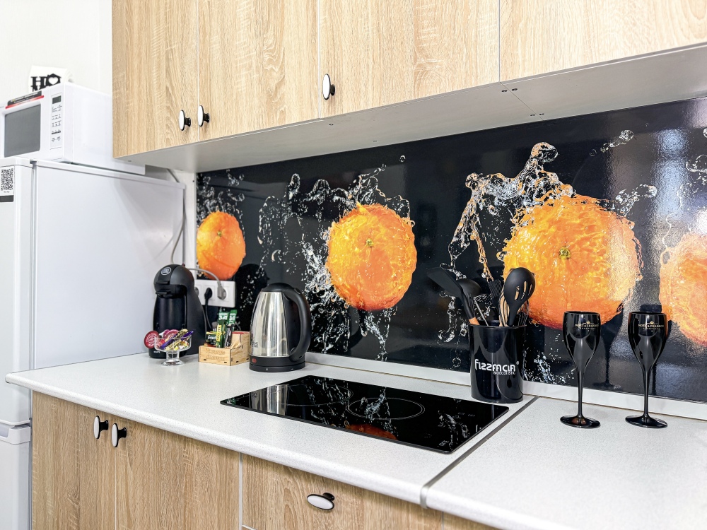 - Плита, холодильник, чайник, кофеварка Dolce Gusto, посуда;