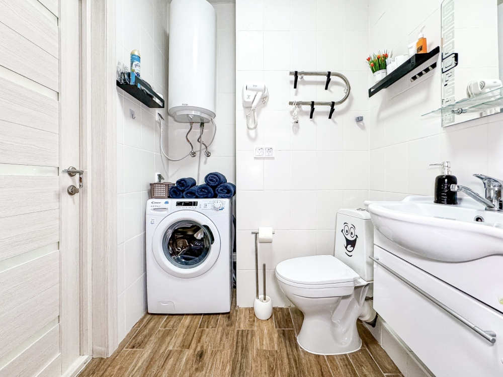 Приветственный набор: тапочки, гель, шампунь, туалетная бумага, мусорные мешки, чай, кофе. Постельное бельё и полотенца предоставляются.