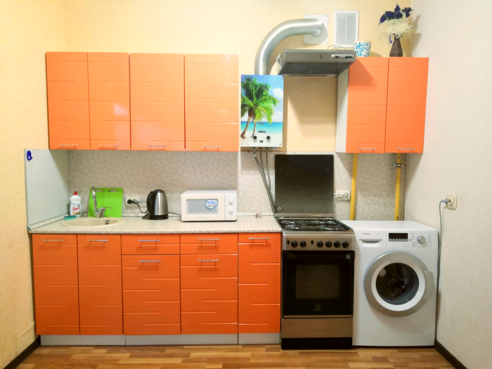 Кухня оснащена всеми необходимыми бытовыми приборами (холодильник, микроволновка, электрический чайник, духовка) и столовыми принадлежностями (кастрюли, сковорода, кружки, тарелки, столовые приборы). Цифровое телевидение, высокоскоростной безлимитный интернет (wi-fi). Предоставляем комплекты постельного белья, махровые полотенца, одноразовые тапочки, набор гостиничной парфюмерии: шампунь, гель и мыло. Идеальная чистота и порядок. После каждого нашего гостя выполняется профессиональная уборка всей квартиры, замена постельного белья и полотенец, дезинфекция санузла.