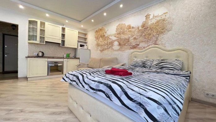 Сдается квартира-студия в тихом центре, в новом многоэтажном комплексе состоящем из 5 домов расположенном в 5 минутах езды на машине от центра города. С новым и качественным ремонтом.