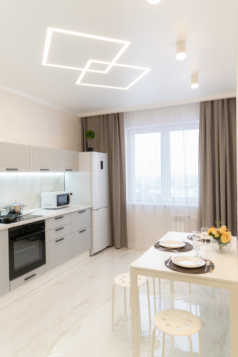 ️В квартире современная мебель, новая сантехника, натяжные потолки, стеклопакеты, хорошая шумоизоляция, фен, утюг, гладильная доска, сушилка для белья, стиральная машина, кондиционер! Есть все необходимое для проживания. Кухня оснащена всеми необходимыми бытовыми приборами (холодильник, микроволновка, электрический чайник, духовка) и столовыми принадлежностями (кастрюли, сковорода, кружки, тарелки, столовые приборы). Цифровое СМАРТ-телевидение, высокоскоростной безлимитный интернет (wi-fi). Ванная и туалет – кафель. Балкон с прекрасным видом (разрешено курение только на балконе!). Предоставляем комплекты постельного белья, махровые полотенца, одноразовые тапочки, набор гостиничной парфюмерии: шампунь, гель и мыло. Идеальная чистота и порядок. После каждого нашего гостя выполняется профессиональная уборка всей квартиры, замена постельного белья и полотенец, дезинфекция санузла.