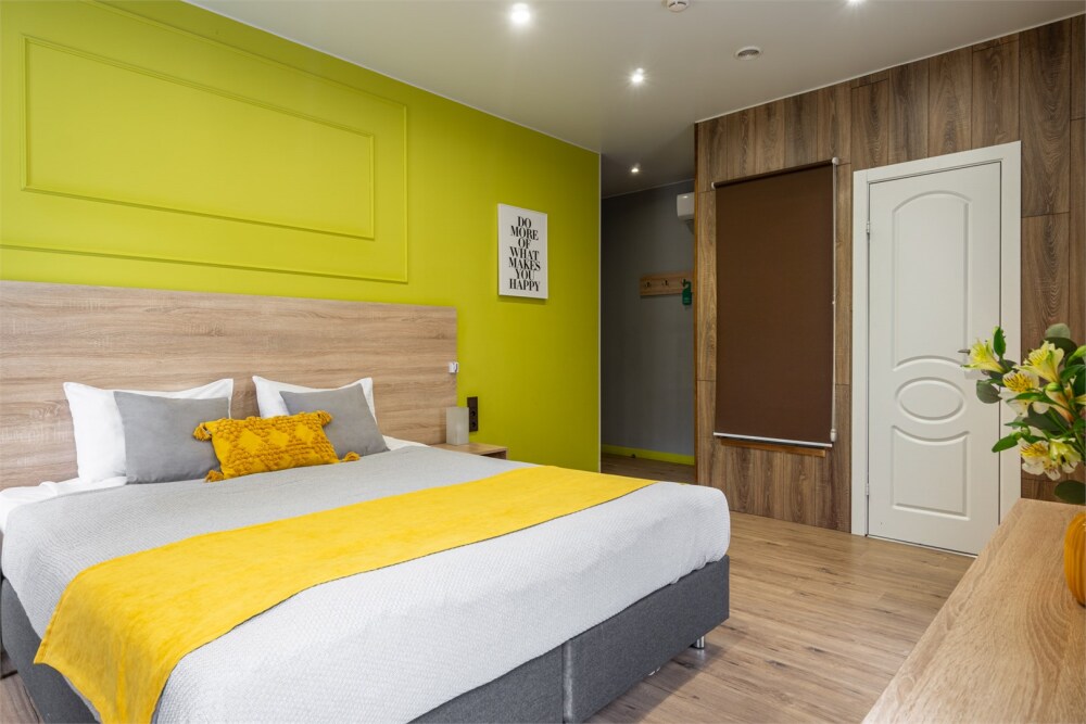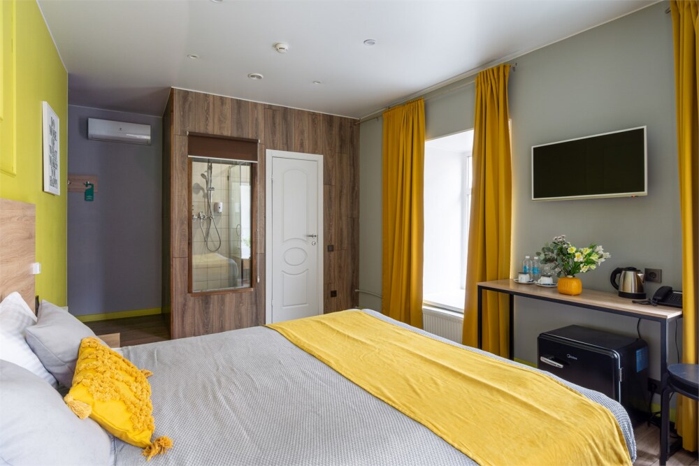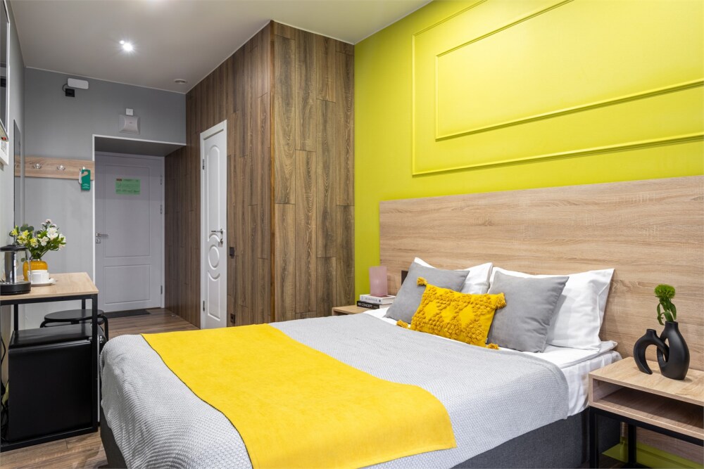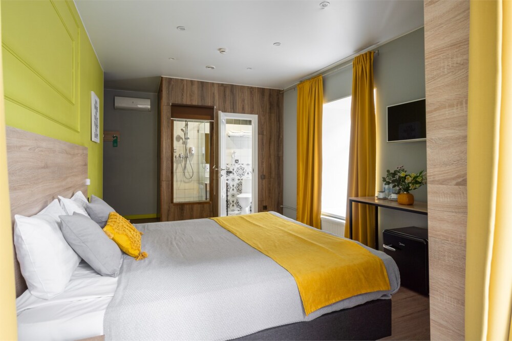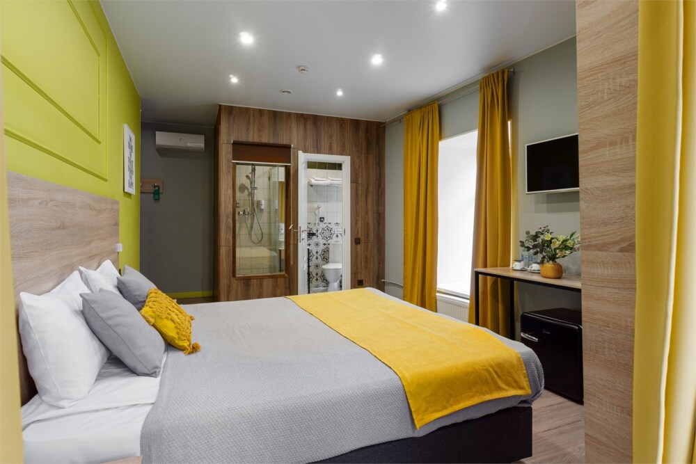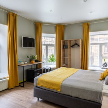 Гости могут забронировать номера категорий Стандарт, Улучшенный, Делюкс и Апартаменты. В каждом из них есть все необходимое для комфортного проживания: кровать, прикроватные тумбочки, стол, стулья, шкаф, ЖК-телевизор, сейф, телефон, электрический чайник, мини-бар, душ, туалет, фен, отопление, звукоизоляция, туалетно-косметические принадлежности, постельное белье, полотенца, тапочки, вешалки для одежды, подключение к кабельному и цифровому телевидению, доступ к беспроводной сети WI-FI. В Апартаментах есть собственная кухня.