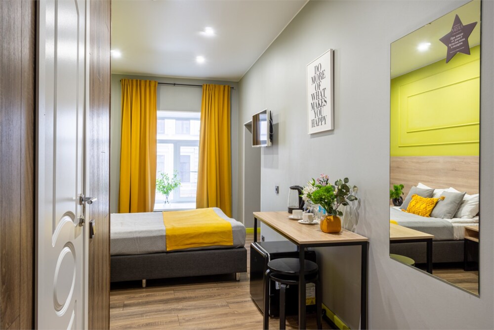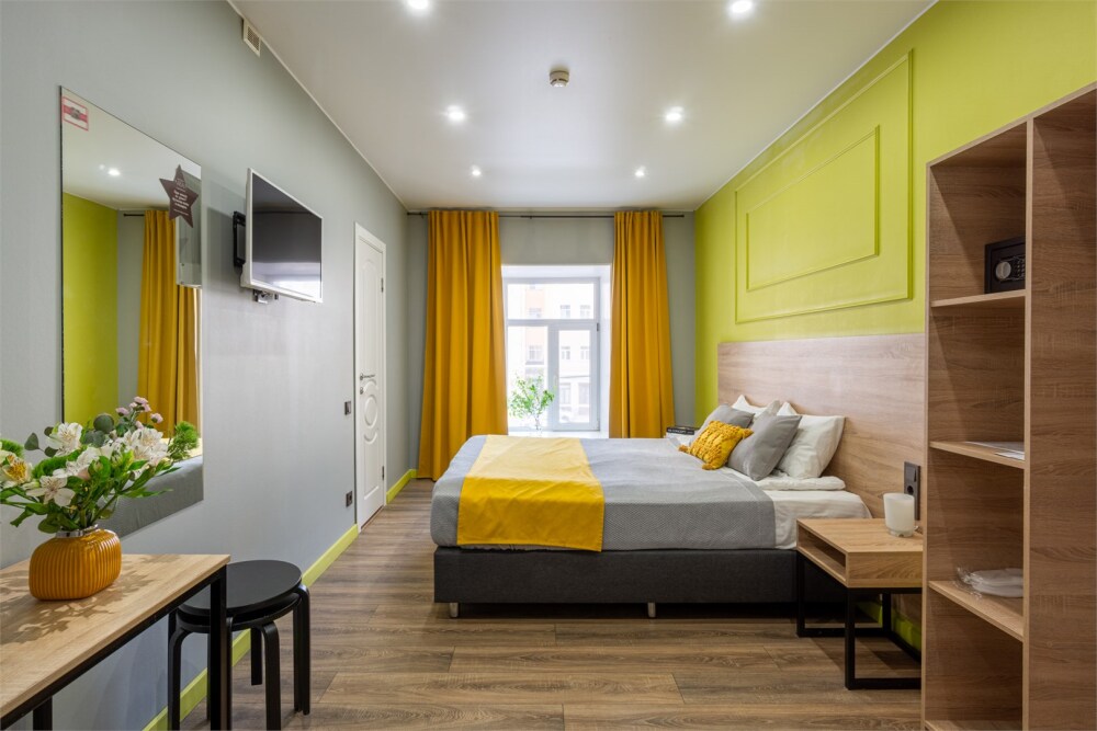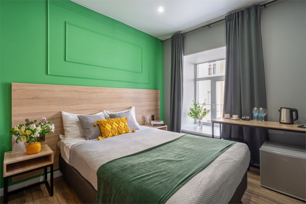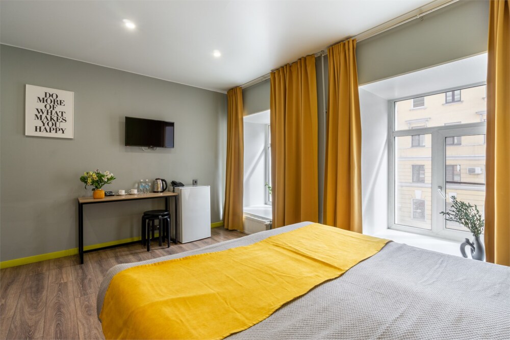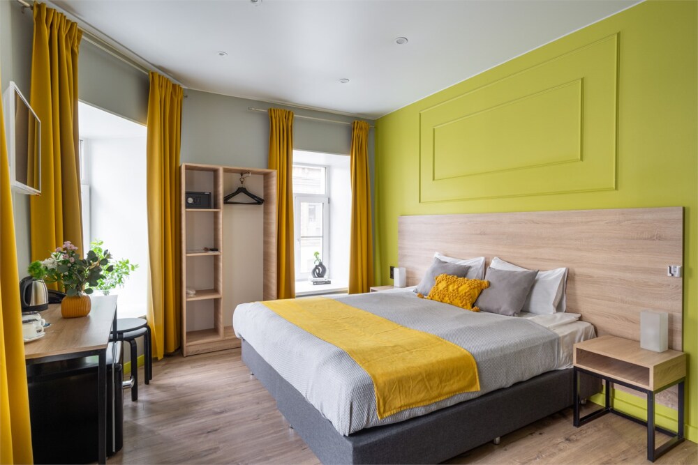 Гости могут забронировать номера категорий Стандарт, Улучшенный, Делюкс и Апартаменты. В каждом из них есть все необходимое для комфортного проживания: кровать, прикроватные тумбочки, стол, стулья, шкаф, ЖК-телевизор, сейф, телефон, электрический чайник, мини-бар, душ, туалет, фен, отопление, звукоизоляция, туалетно-косметические принадлежности, постельное белье, полотенца, тапочки, вешалки для одежды, подключение к кабельному и цифровому телевидению, доступ к беспроводной сети WI-FI. В Апартаментах есть собственная кухня.