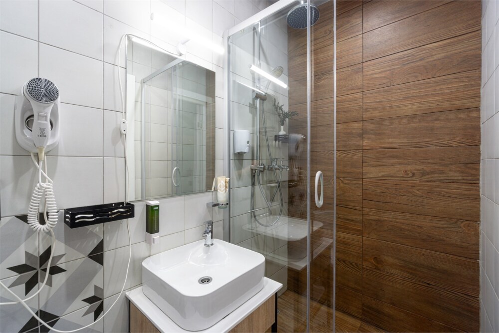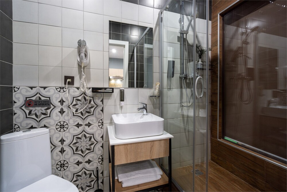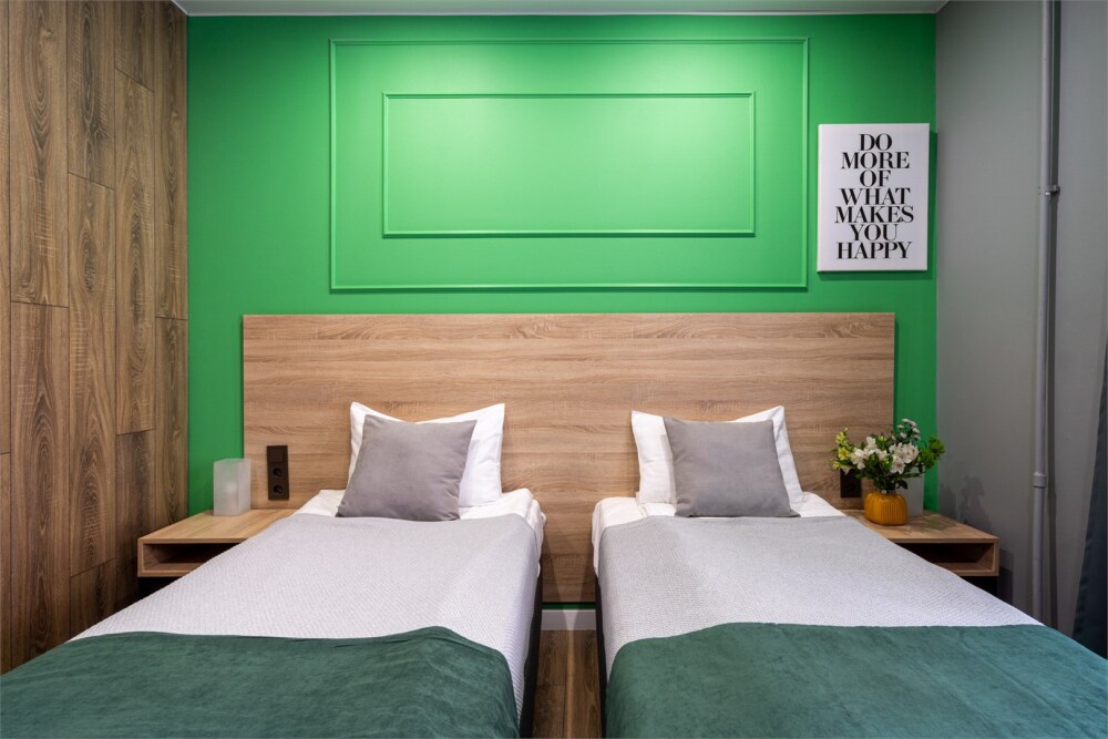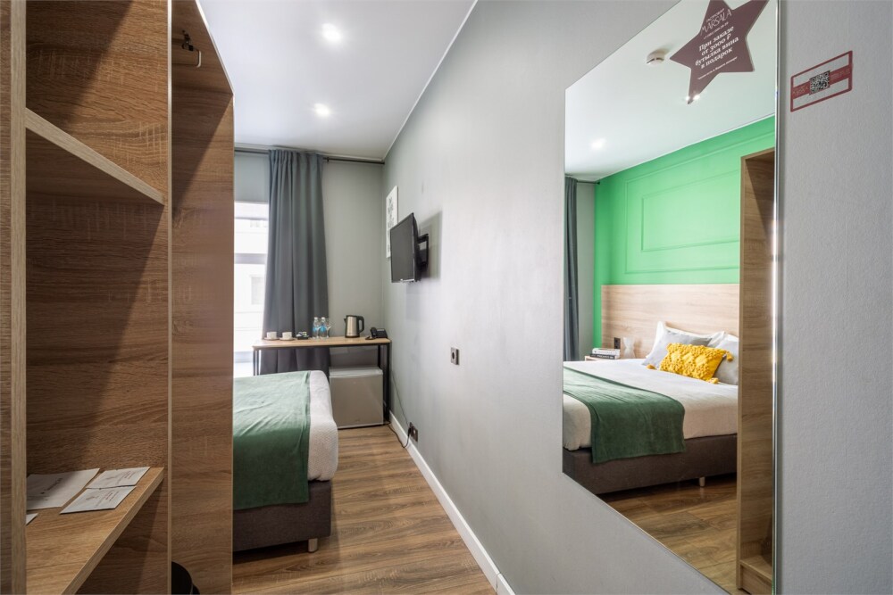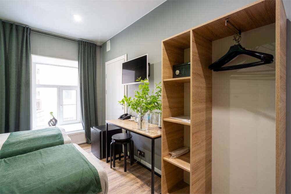 В номере: две односпальные кровати, прикроватные тумбочки, стол, стулья, ЖК-телевизор, шкаф, сейф, телефон, электрический чайник, мини-бар, душ, туалет, фен, отопление, звукоизоляция, туалетно-косметические принадлежности, постельное белье, полотенца, тапочки, вешалки для одежды, подключение к кабельному и цифровому телевидению, доступ к беспроводной сети WI-FI.