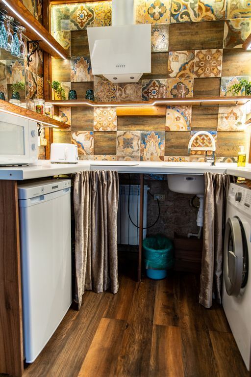 В квартире есть: отдельный вход, шикарный балкон, тёплый пол при входе, тапочки одноразовые, столик для балкона, кондиционер, одна-2х спальная кровать, чистое бельё и полотенца, 2 тумбочки прикроватные, шкаф ,сейф, санузел с тёплым полом, гигиенический душ +средства гигиены, фен, кухня, стиральная машина+ средства для стирки, плита электрическая 2 конфорки, вытяжка над плитой, тостер, чайник, кофемашина,чай-2 вида, кофе-3 вида, сахар, сладости, холодильник, стол круглый, 2 стула, камин, телевизор, бесплатный интернет.