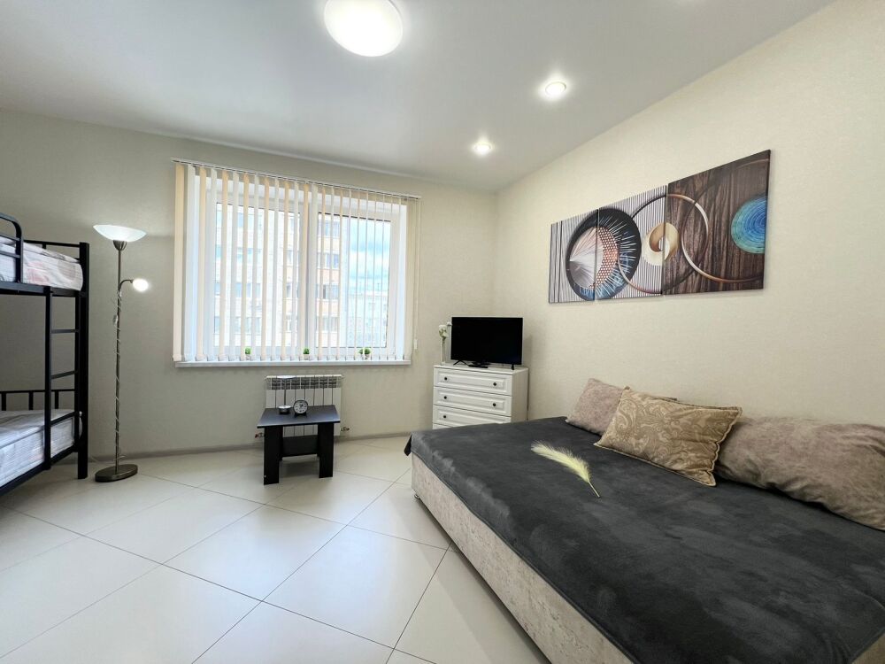В квартире современная мебель, новая сантехника, натяжные потолки, стеклопакеты, фен, утюг, гладильная доска, сушилка для белья, стиральная машина. Есть все необходимое для проживания. В Вашем распоряжении: две большие двуспальные кровати с мягкими подушками, один двуспальный раскладной диван и одна двухъярусная кровать. Дополнительное спальное место предоставляется по запросу.