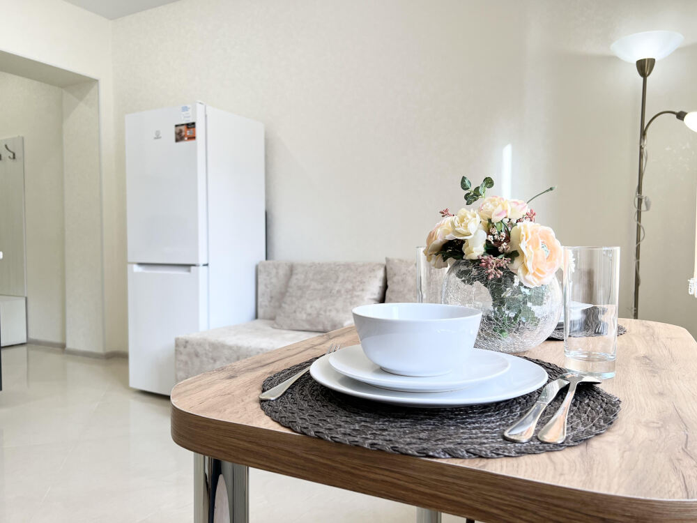 Кухня оснащена всеми необходимыми бытовыми приборами (холодильник, микроволновка, электрический чайник) и столовыми принадлежностями (кастрюли, сковорода, кружки, тарелки, столовые приборы). Цифровое телевидение, высокоскоростной безлимитный интернет (wi-fi). Предоставляем комплекты постельного белья, махровые полотенца, одноразовые тапочки, набор гостиничной парфюмерии: шампунь, гель и мыло. Идеальная чистота и порядок. После каждого нашего гостя выполняется профессиональная уборка всей квартиры, замена постельного белья и полотенец, дезинфекция санузла.