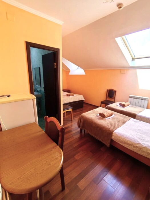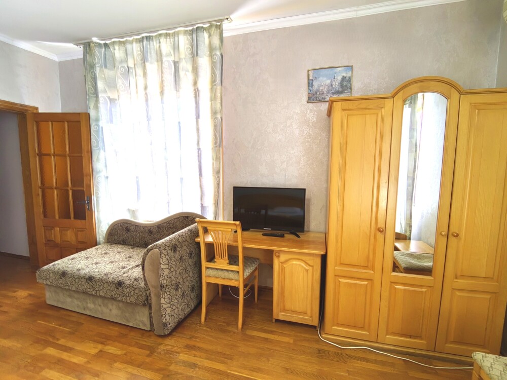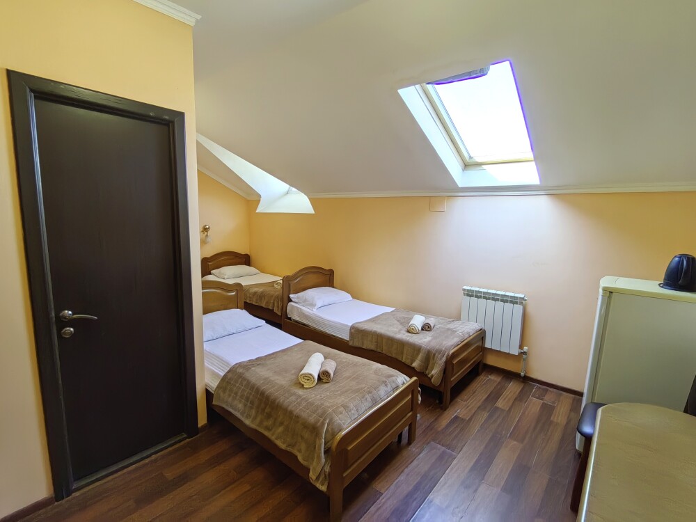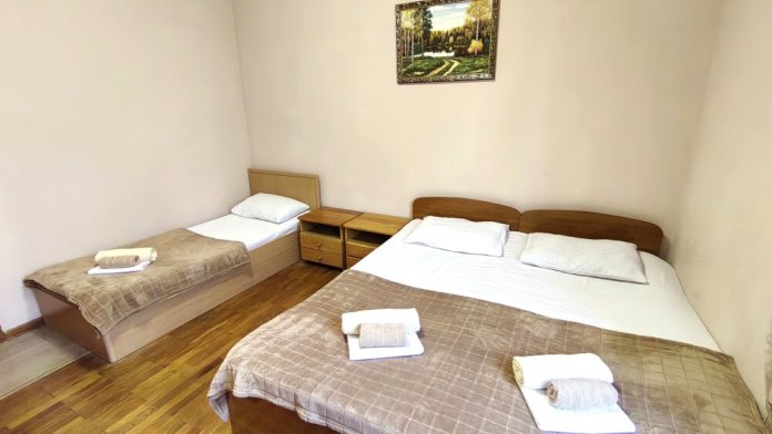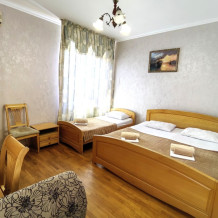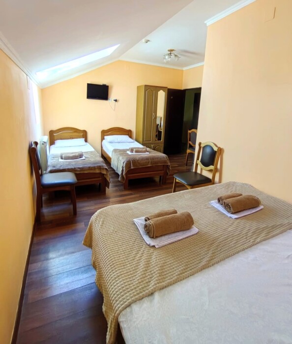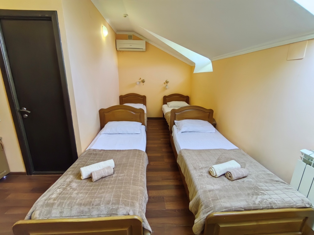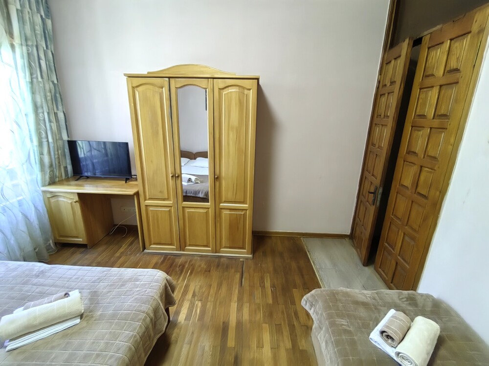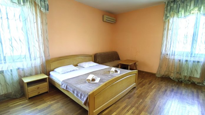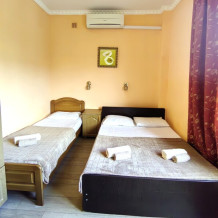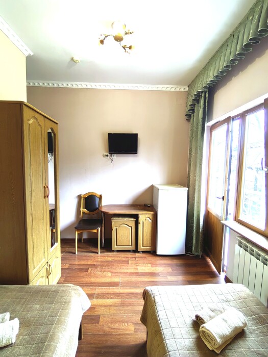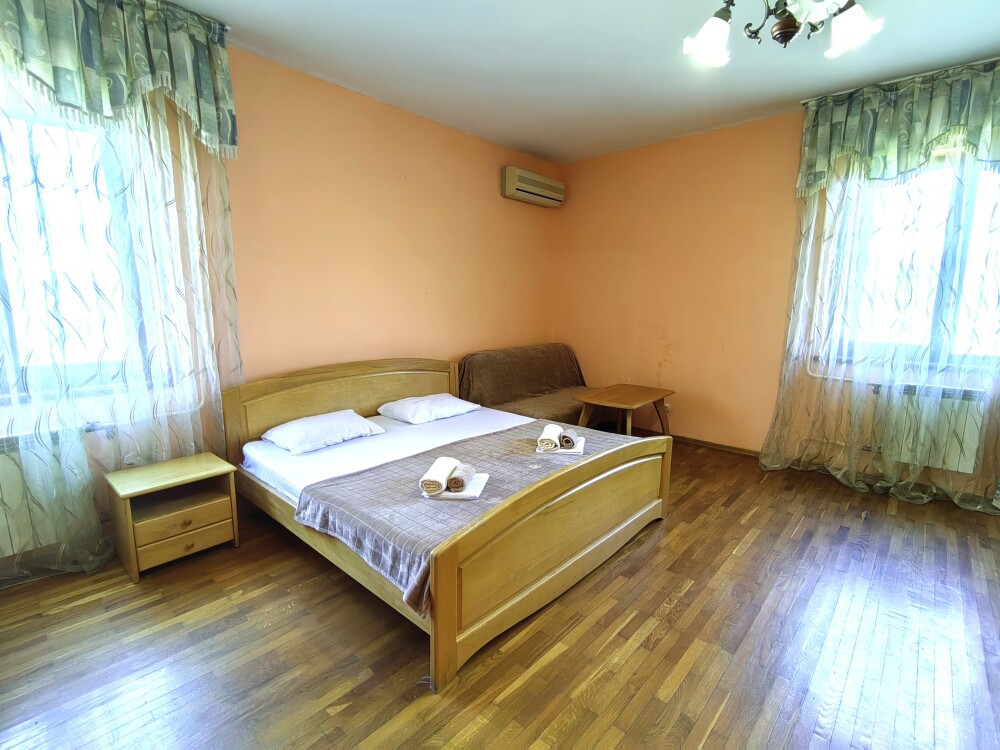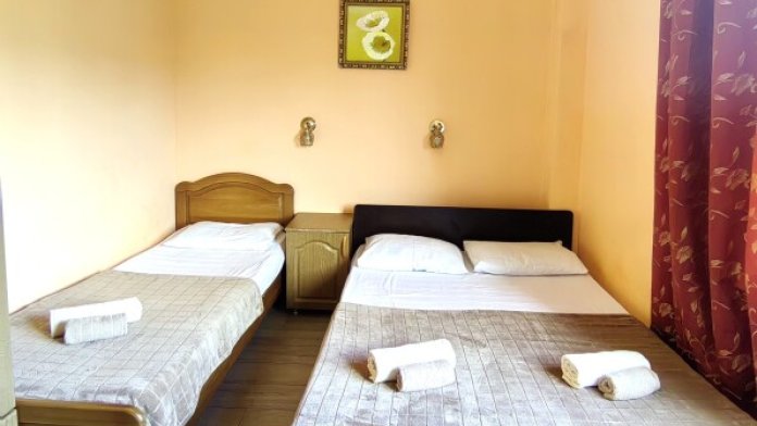 Номер для 4-5 гостей. Для комфортного проживания в номере телевизор, wi-fi, холодильник, кондиционер, стол, стулья, шкаф и санузел. Постельное бельё, пледы и полотенца предоставляем.
