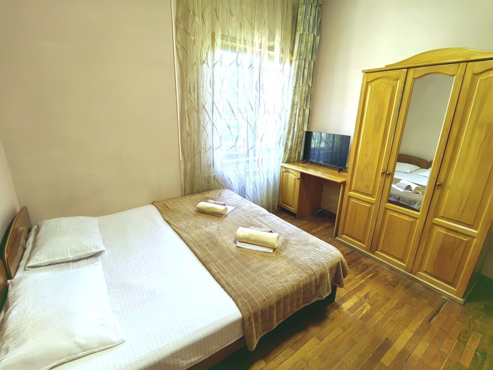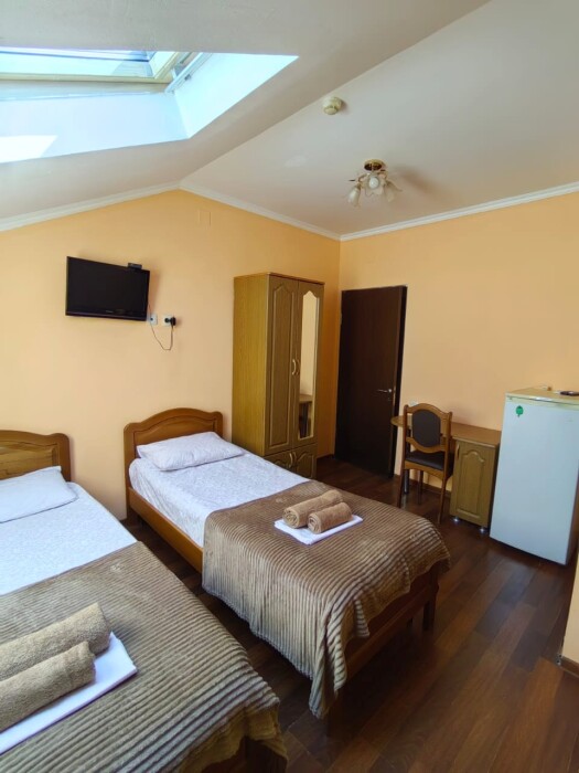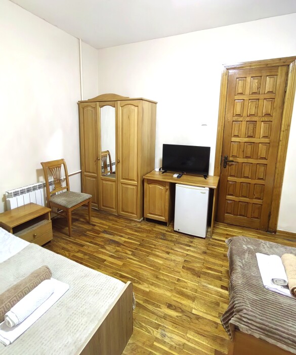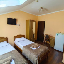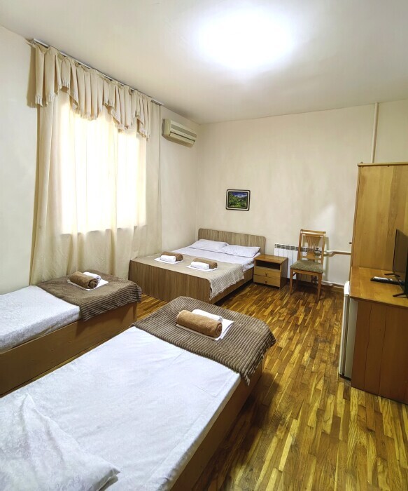 Стандартный номер для 4 гостей. Для комфортного проживания в номере телевизор, wi-fi, холодильник, кондиционер, стол, стулья, шкаф и санузел. Постельное бельё, пледы и полотенца предоставляем.