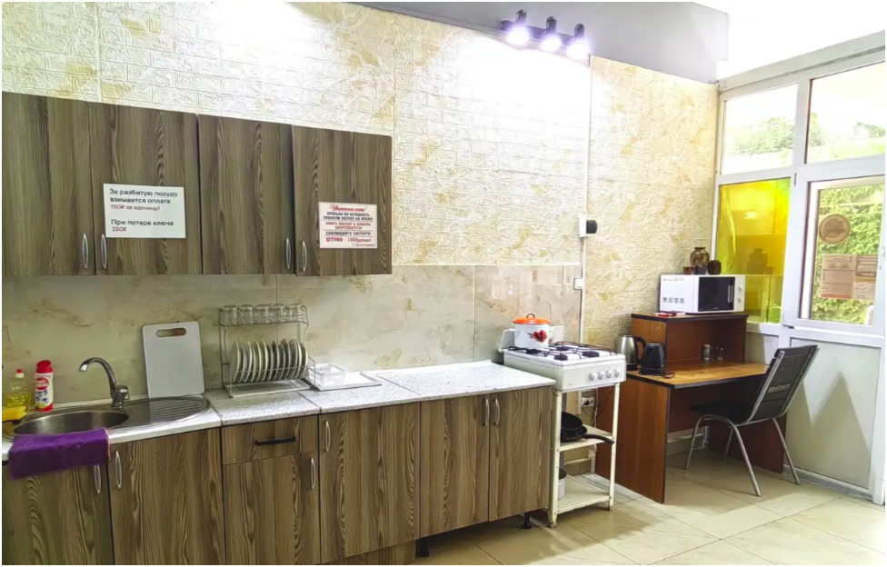 Если у Вас нет желания готовить, можно спуститься в кафе. Завтраки, комплексные обеды и ужины - ждут Вас. И конечно же, сочный шашлык и разнообразие напитков.