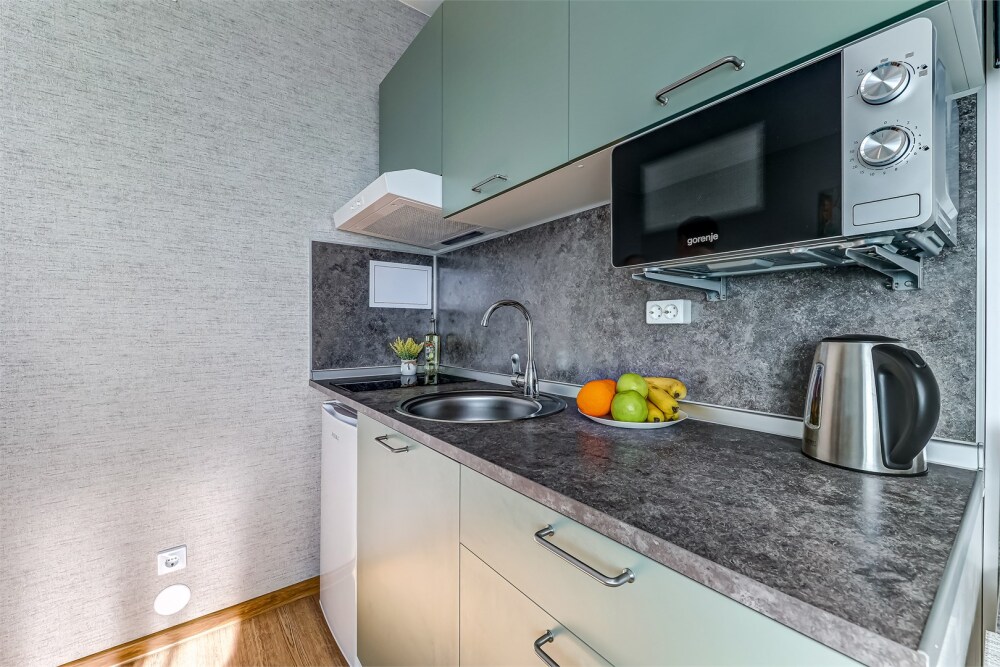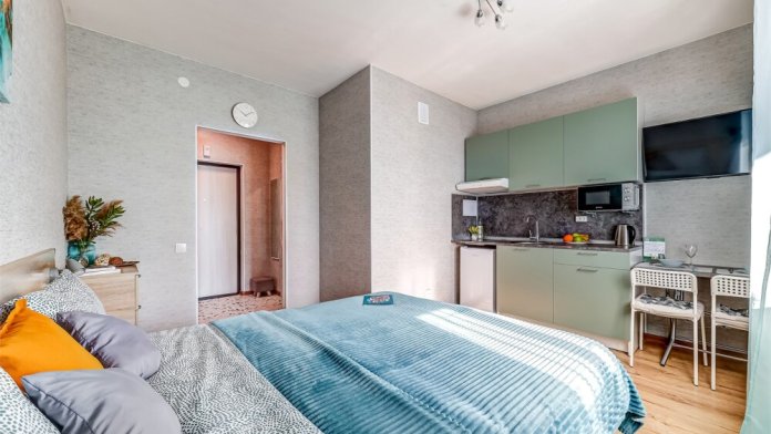 Солнечная студия в жилом комплексе «4You» - идеальное место для комфортного и уютного проживания. Интерьер студии выполнен в светлых тонах, что создает атмосферу спокойствия и умиротворения. Вся мебель в квартире новая и удобная, каждая деталь продумана до мелочей для вашего комфорта. Ванная комната также не отстает по комфорту - здесь есть все необходимые удобства, а также стиральная машинка и фен. Проведя время в этой солнечной студии, вы точно захотите вернуться сюда снова.