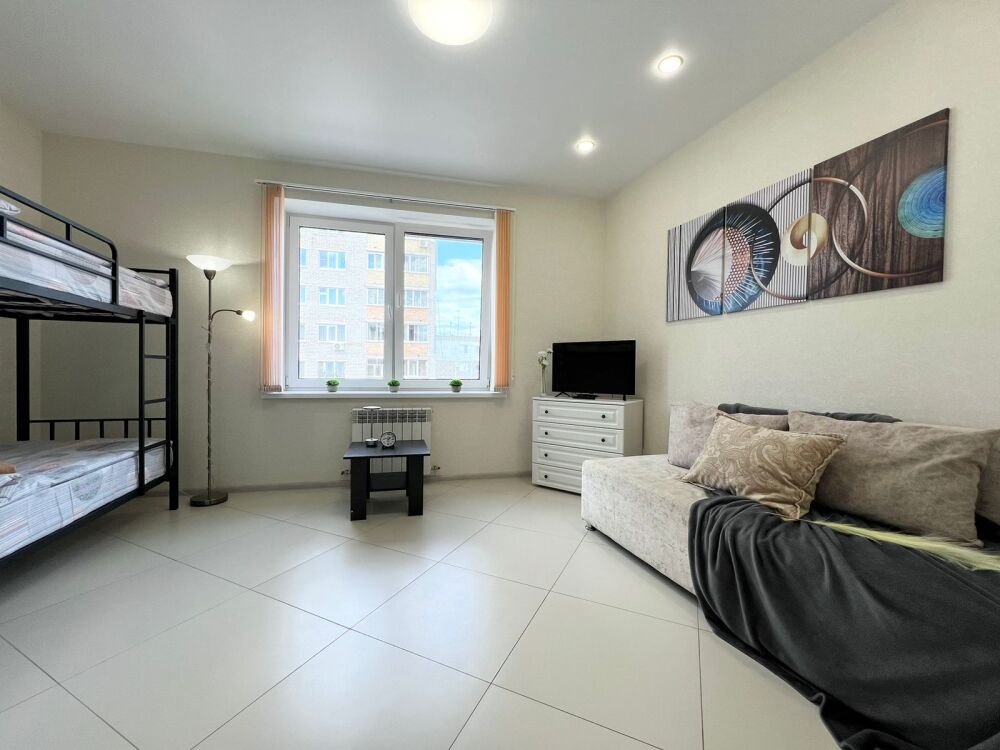 В квартире современная мебель, новая сантехника, натяжные потолки, стеклопакеты, фен, утюг, гладильная доска, сушилка для белья, стиральная машина. Есть все необходимое для проживания. В Вашем распоряжении: две большие двуспальные кровати с мягкими подушками, один двуспальный раскладной диван и одна двухъярусная кровать. Дополнительное спальное место предоставляется по запросу.
