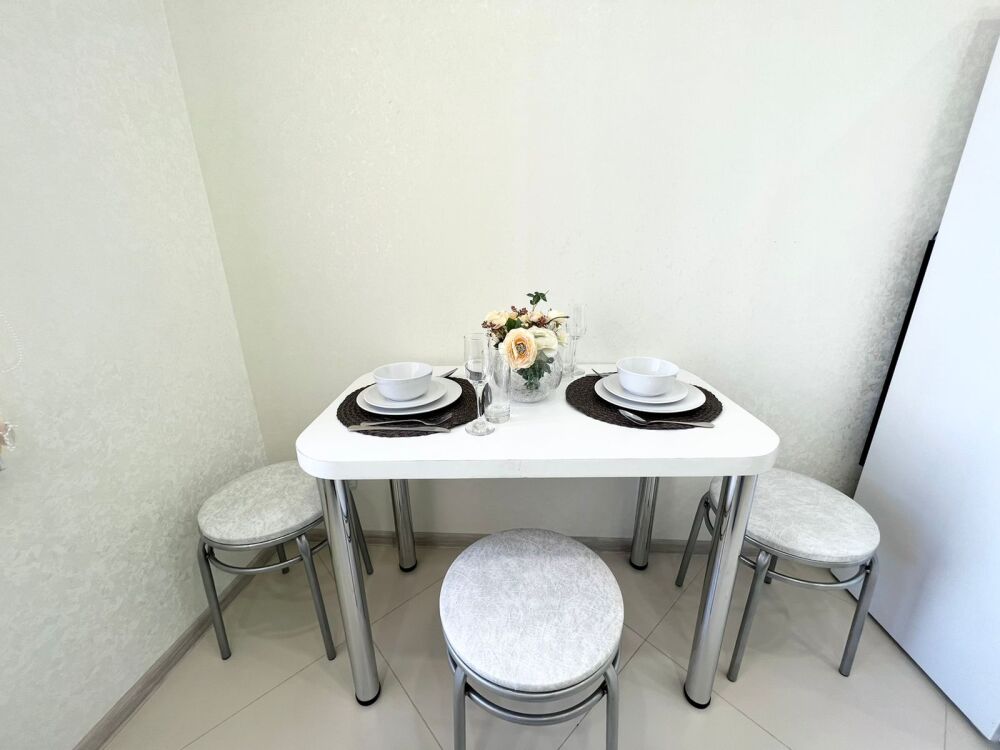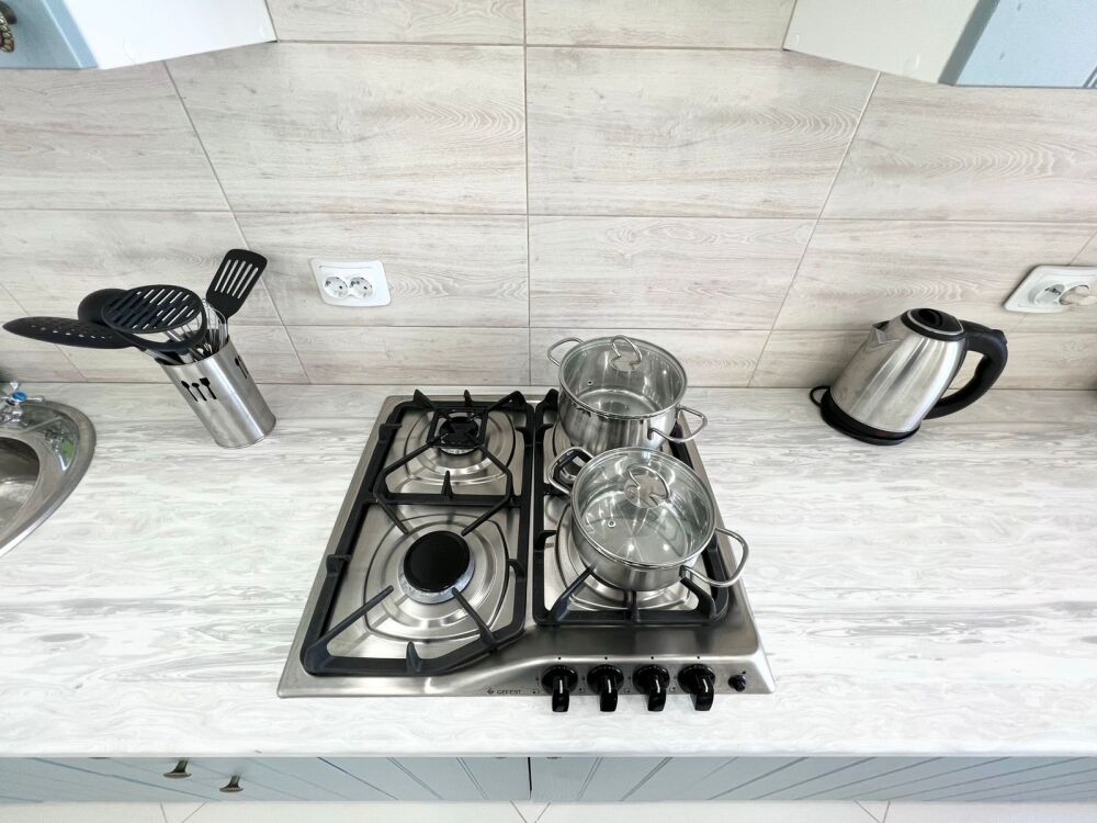 Кухня оснащена всеми необходимыми бытовыми приборами (холодильник, микроволновка, электрический чайник) и столовыми принадлежностями (кастрюли, сковорода, кружки, тарелки, столовые приборы). Цифровое телевидение, высокоскоростной безлимитный интернет (wi-fi). Предоставляем комплекты постельного белья, махровые полотенца, одноразовые тапочки, набор гостиничной парфюмерии: шампунь, гель и мыло. Идеальная чистота и порядок. После каждого нашего гостя выполняется профессиональная уборка всей квартиры, замена постельного белья и полотенец, дезинфекция санузла.