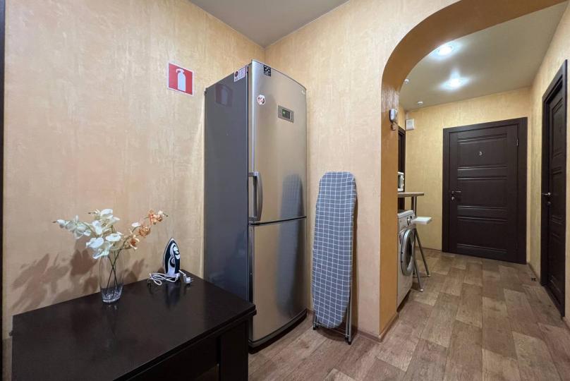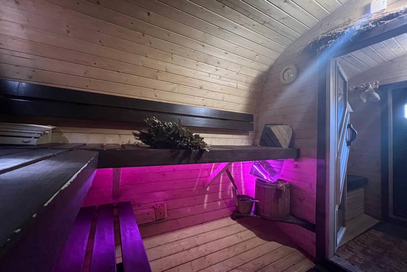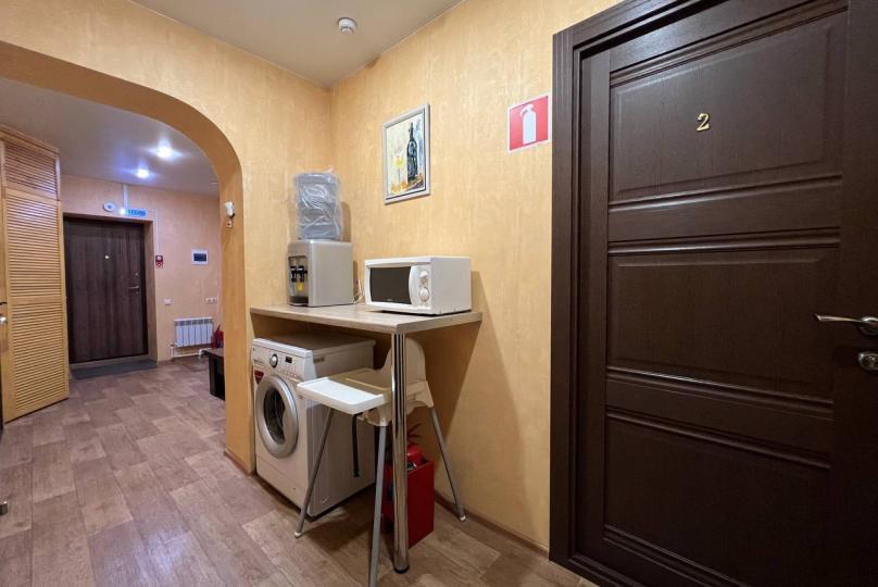 На первом этаже гостевого дома в распоряжении гостей находятся: стиральная машинка, холодильник, гладильная доска и утюг, купер с горячей и холодной питьевой водой, микроволновая печь и детский стульчик для кормления.