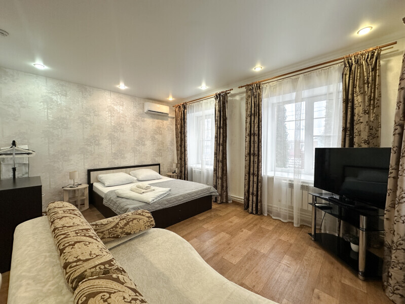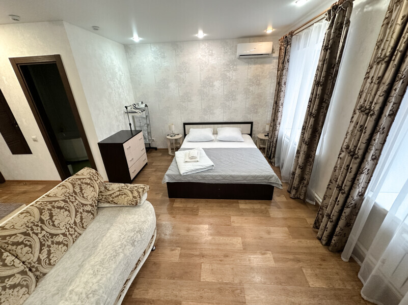 Семейный номер с двуспальной кроватью и двуспальным диваном