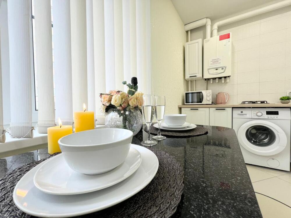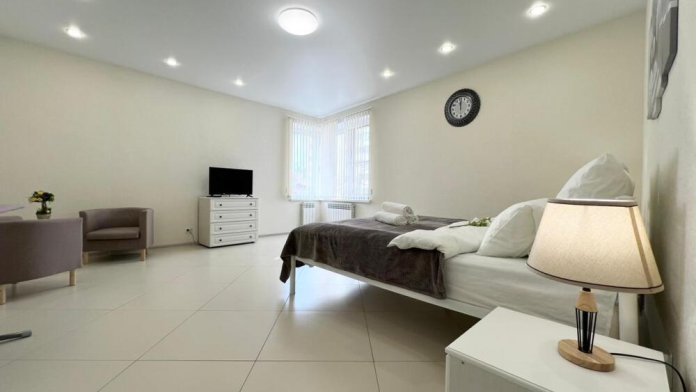 Кухня оснащена всеми необходимыми бытовыми приборами (холодильник, микроволновка, электрический чайник) и столовыми принадлежностями (кастрюли, сковорода, кружки, тарелки, столовые приборы). Цифровое телевидение, высокоскоростной безлимитный интернет (wi-fi). Предоставляем комплекты постельного белья, махровые полотенца, одноразовые тапочки, набор гостиничной парфюмерии: шампунь, гель и мыло. Идеальная чистота и порядок. После каждого нашего гостя выполняется профессиональная уборка всей квартиры, замена постельного белья и полотенец, дезинфекция санузла.