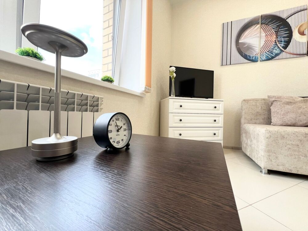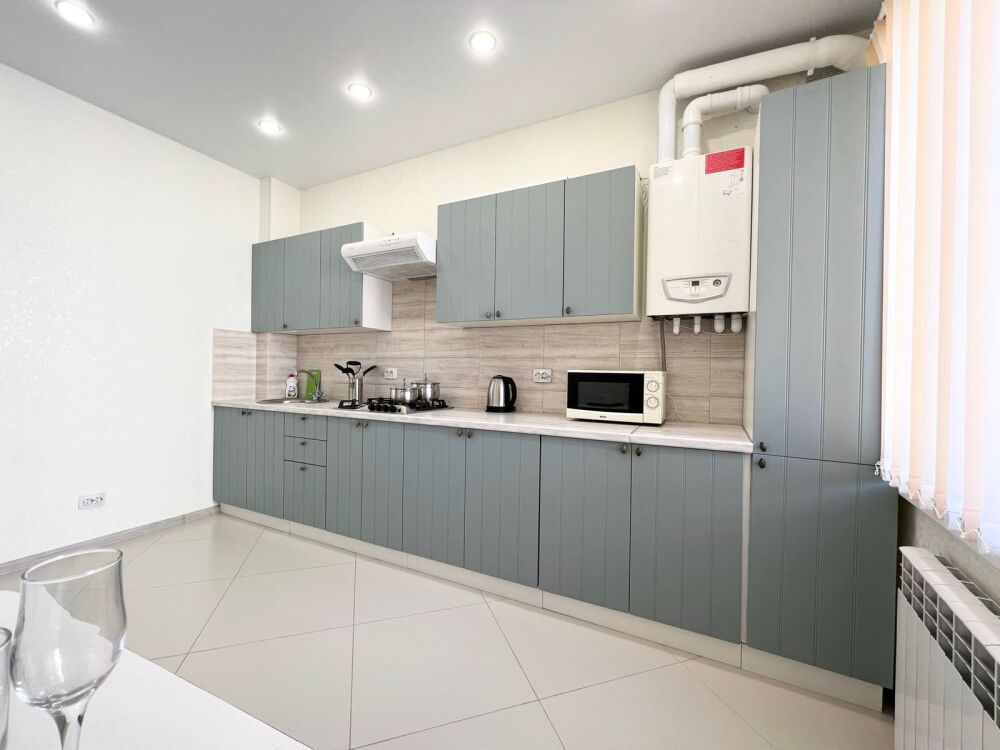 Кухня оснащена всеми необходимыми бытовыми приборами (холодильник, микроволновка, электрический чайник) и столовыми принадлежностями (кастрюли, сковорода, кружки, тарелки, столовые приборы). Цифровое телевидение, высокоскоростной безлимитный интернет (wi-fi). Предоставляем комплекты постельного белья, махровые полотенца, одноразовые тапочки, набор гостиничной парфюмерии: шампунь, гель и мыло. Идеальная чистота и порядок. После каждого нашего гостя выполняется профессиональная уборка всей квартиры, замена постельного белья и полотенец, дезинфекция санузла.