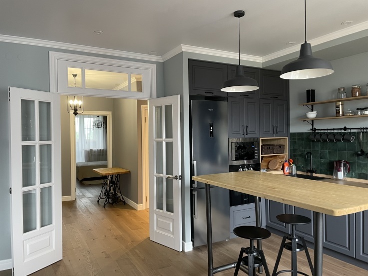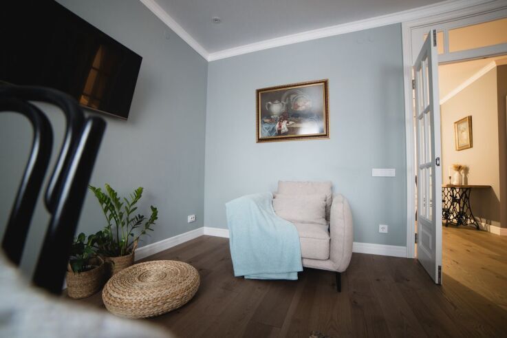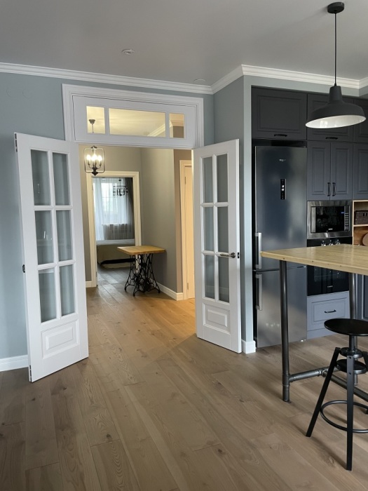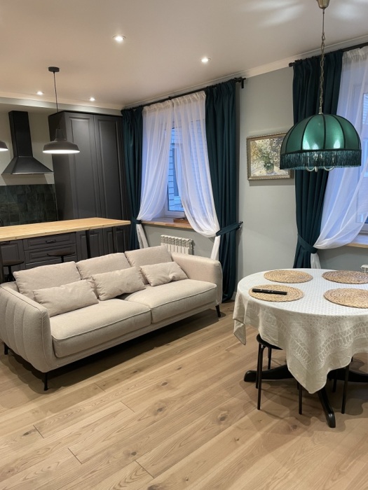Это новые апартаменты с дизайнерским ремонтом в центре города, которые обеспечат комфорт в любое время года. В комнатах паркет из натурального дерева, в санузлах и в прихожей - испанский керамогранит с подогревом.