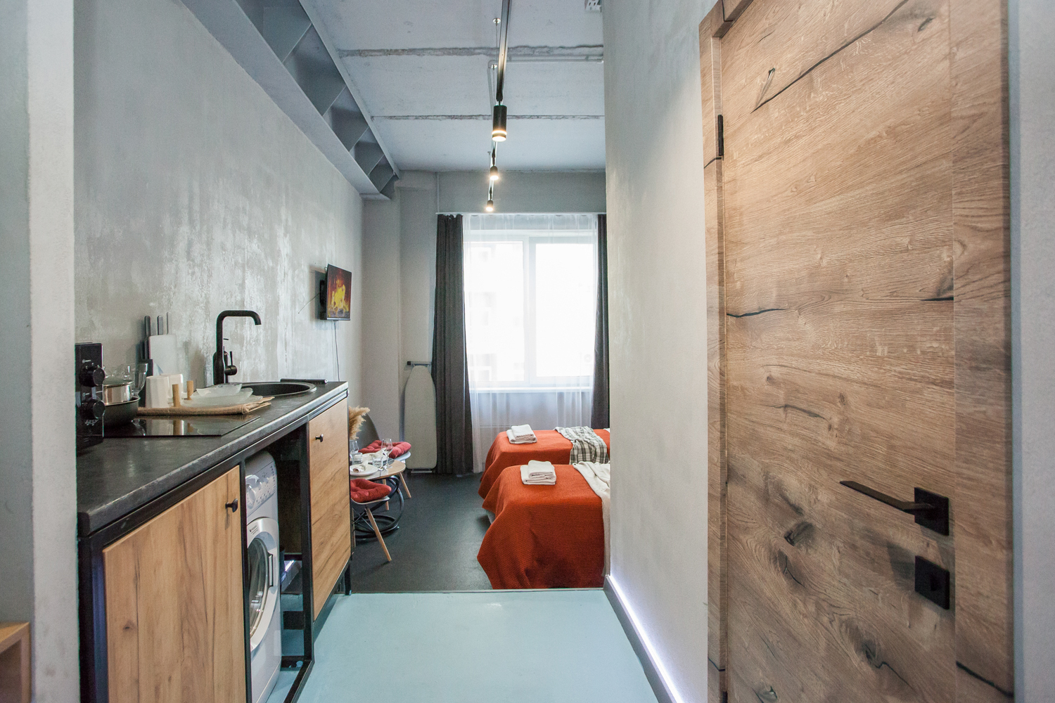 Для Вашего удобства предоставлены: стиральная машинка, 2 односпальные кровати с ортопедическим матрасом, кухонная зона, телевизор, Smart TV, холодильник, плита, микроволновка, чайник, посуда, утюг, гладильная доска, сушилка для белья, фен, безлимитный Wi-Fi.