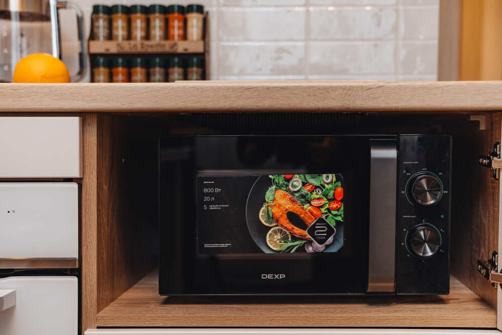 - Холодильник, варочная поверхность, тостер, микроволновка, чайник и гейзерная кофеварка.