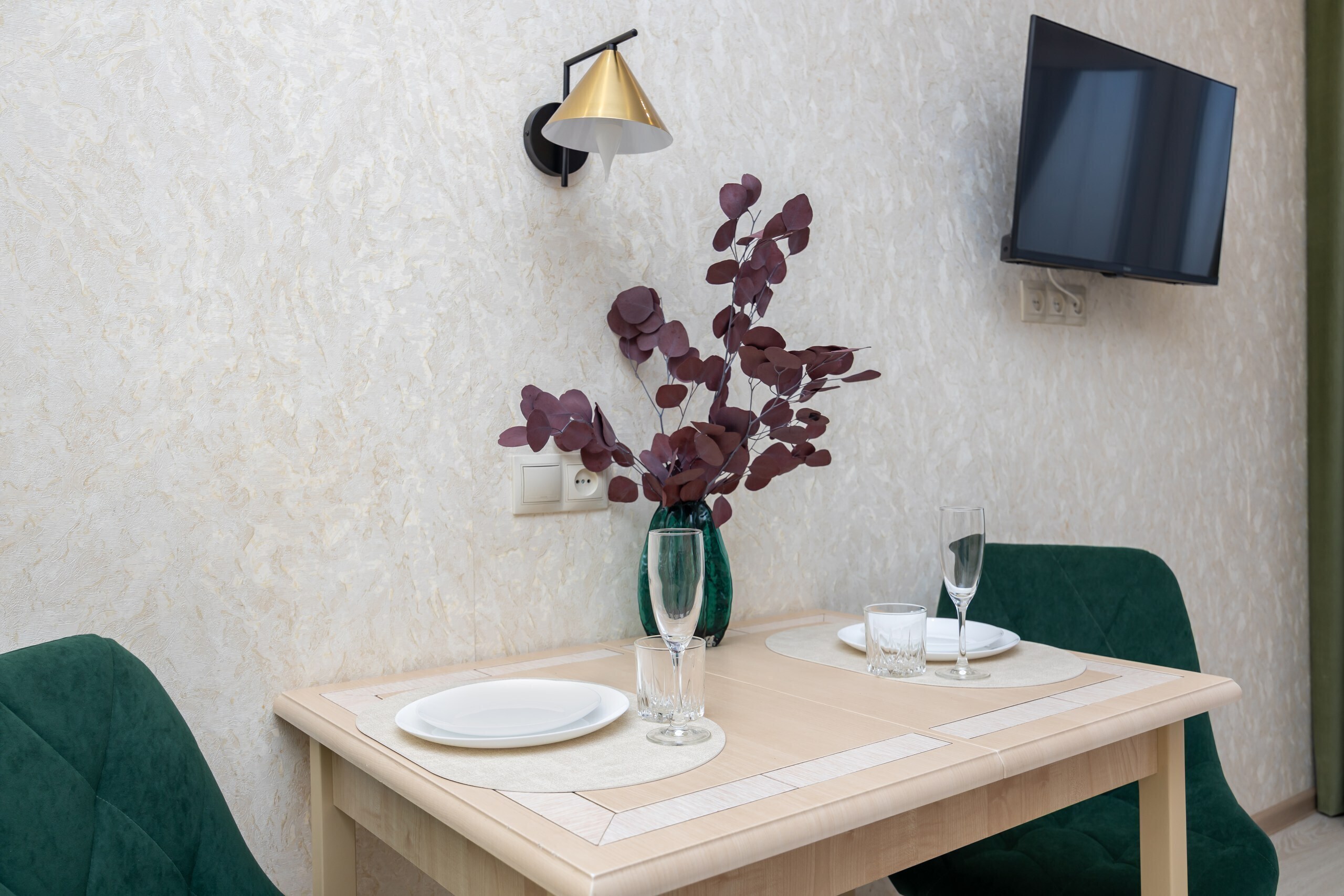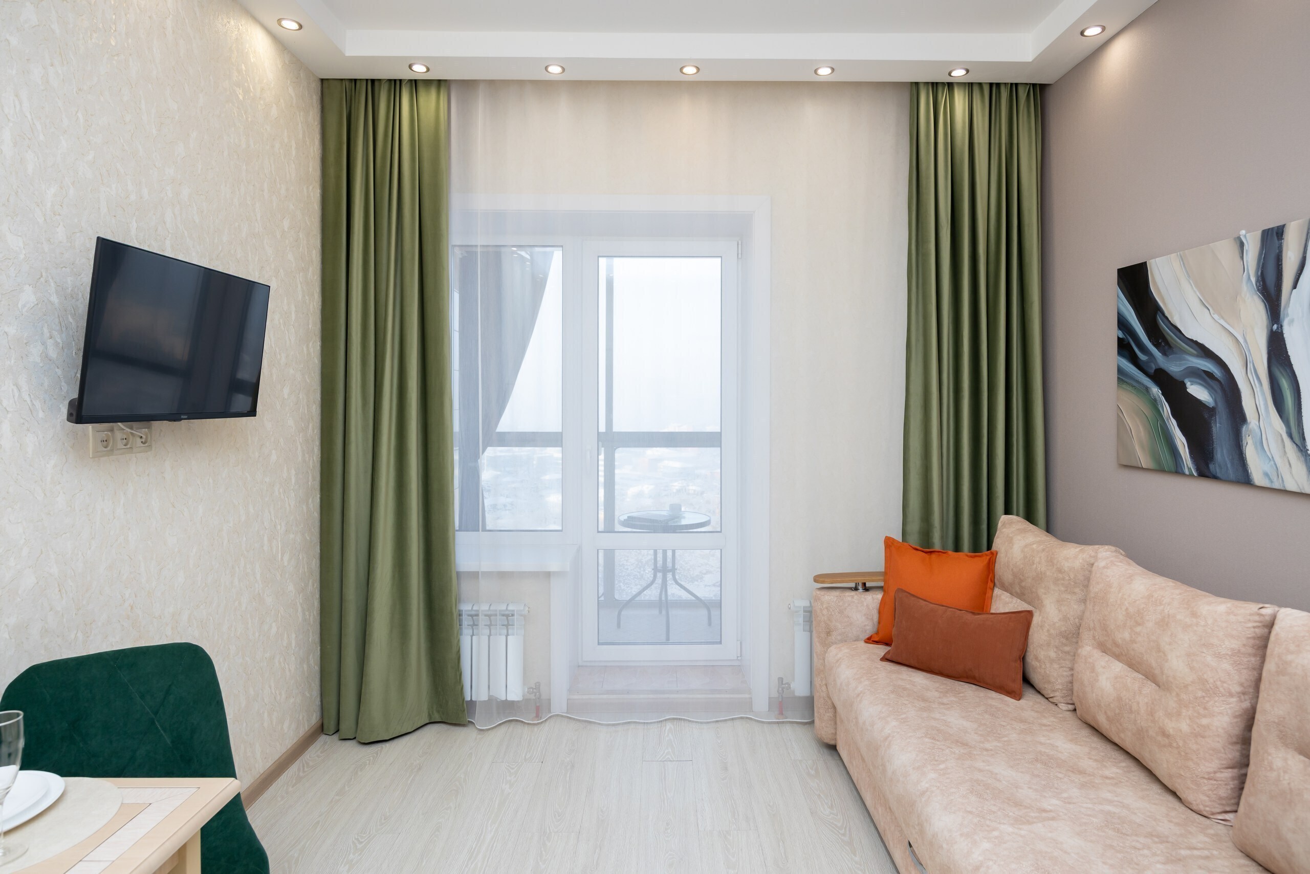Однокомнатная квартира с уютной спальной комнатой и панорамным видом на город, в которой приятно провести вечер, оставив дневные заботы позади. С балкона открывается прекрасный вид на город. Квартира расположена в центре города, что позволяет с легкостью в любое место. Квартира рассчитана до 4 человек.