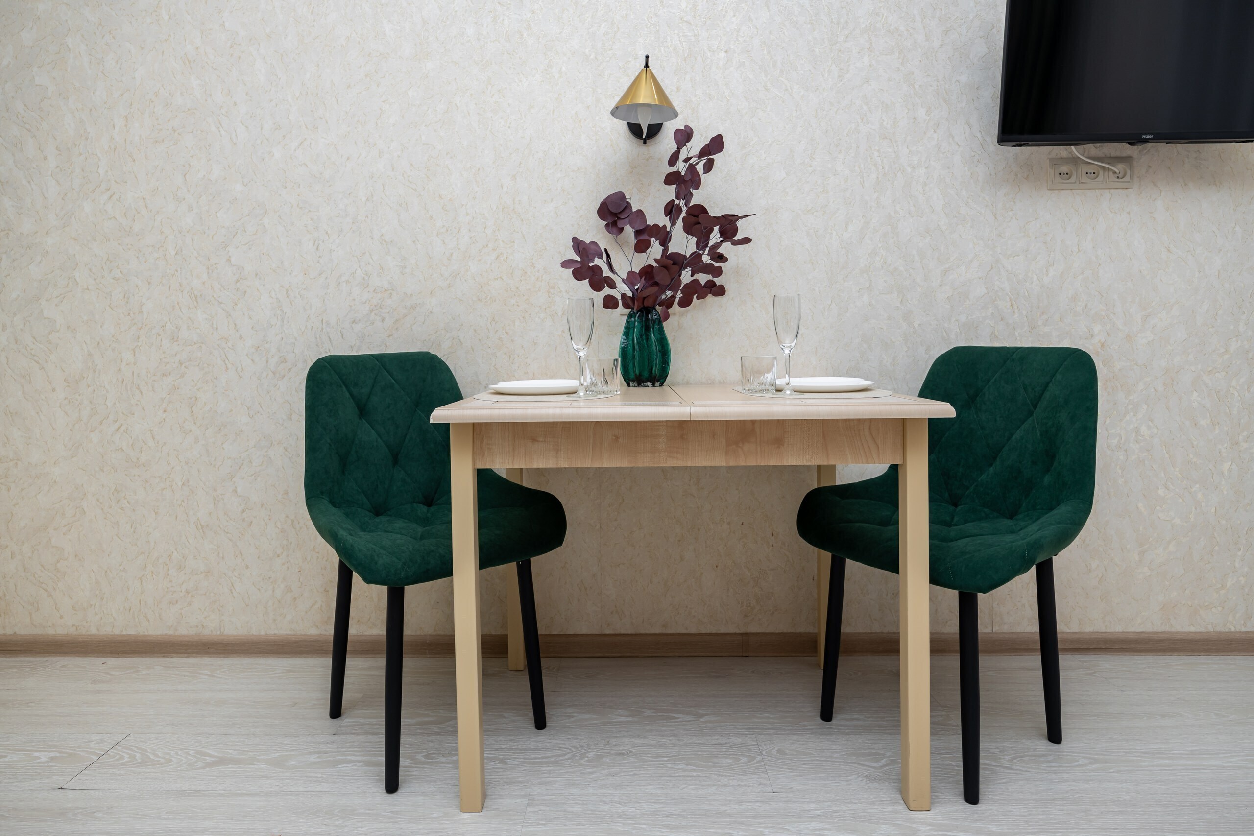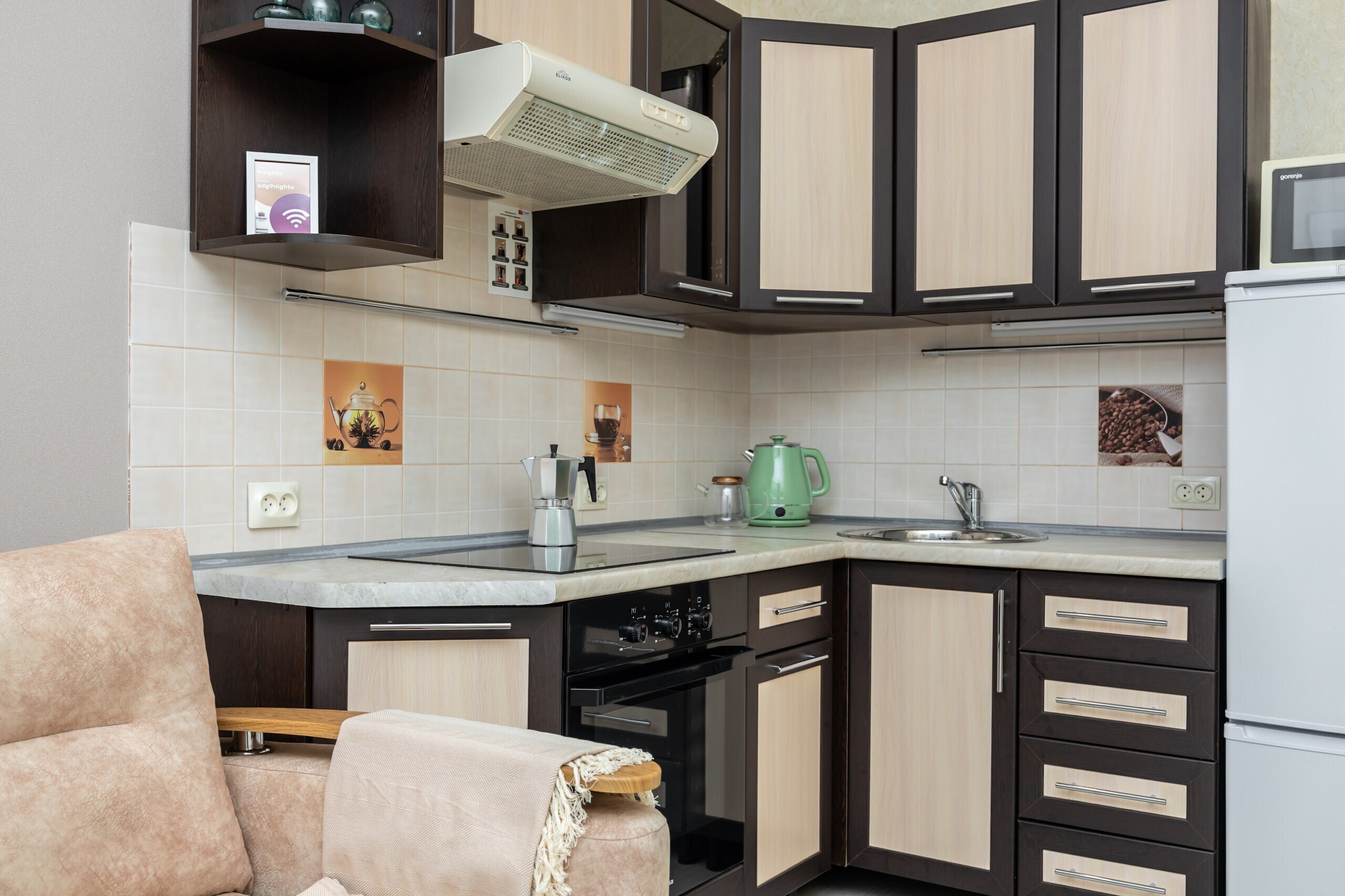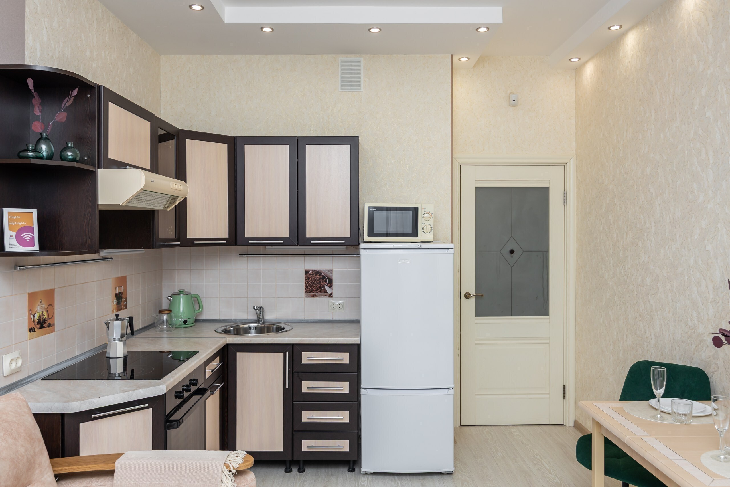 Полностью оборудованные кухни с посудой и столовыми приборами.