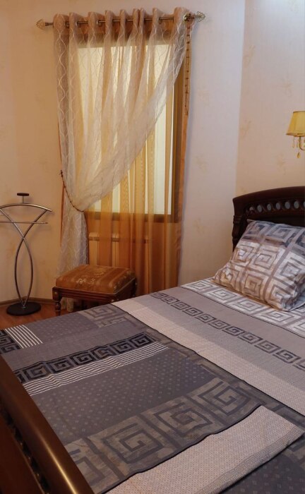 Оснащена всем необходимым для комфортного проживания: двухместный кровать, раскладной диван, раскладушка, постельное белье, полотенца, халат, одноразовые тапочки и средства для гигиены, уборки и стирки, телевизор(160 каналов), высокоскоростной Wi-Fi интернет, гладильная доска, утюг, пылесос, кухонные принадлежности.