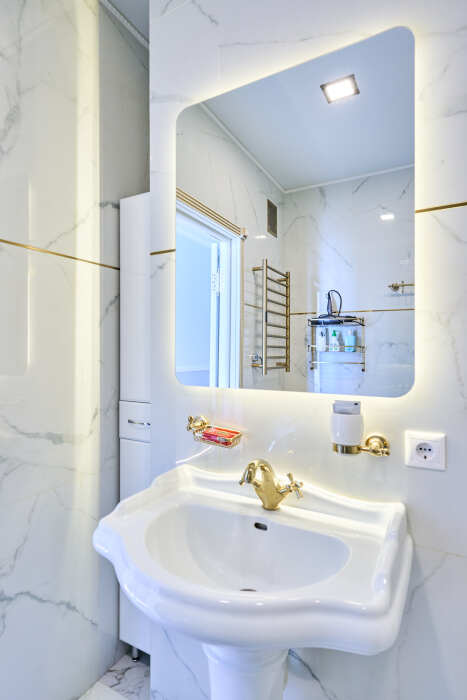 Рядом с домом есть вся инфраструктура (магазины, аптеки, кофейня, остановки общественного транспорта), удобно добираться как до центра, так и до аэропорта. В пяти минутах ходьбы Курортный проспект.