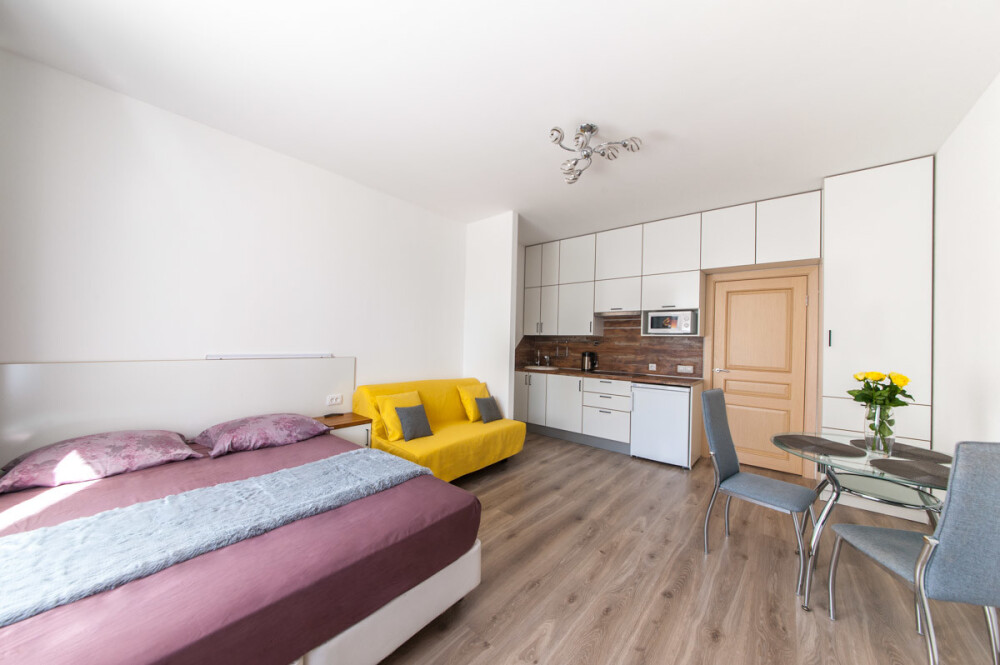 Уютная студия вмещает до 4-ти гостей и находится на 2 этаже дома бизнес-класса. Новый комплекс бизнес-класса располагается в одном из красивейших мест Московского района, рядом с Пулковским парком. Жилой дом находится в престижном квартале Московского района. Территория дома озеленена и благоустроена. Школы, детские сады, больницы, поликлиники, магазины, кафе, рестораны и салоны красоты в пешей доступности. Для любителей активного отдыха вблизи есть большой “Пулковский Парк”. Для любителей шоппинга в пешей доступности есть ТРЦ “ЛЕТО” с кинотеатром и гипермаркетом «Ашан»). Станция метро «Звездная» в 25 минутах пешком. До центра города 15 минут на метро без пересадок.