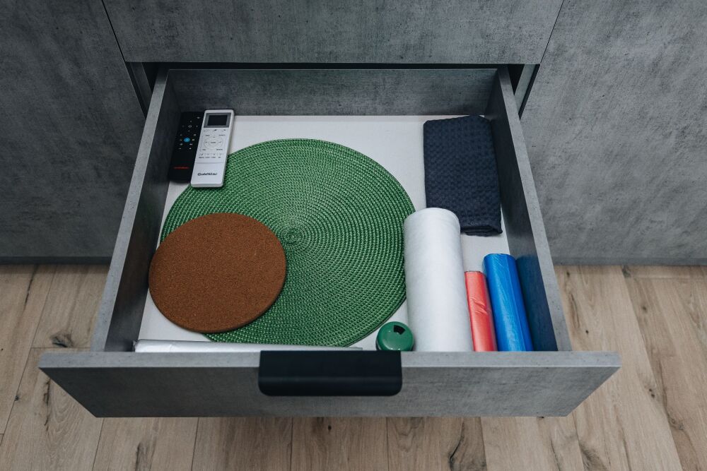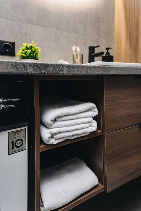 В квартире есть все, что может понадобиться для приготовления еды. Также есть вся посуда для комфортного проживания: ножи, столовые приборы на 2 человека, кастрюля, сковородка, тарелки, бокалы и многое другое включено, если снять студию у нас.