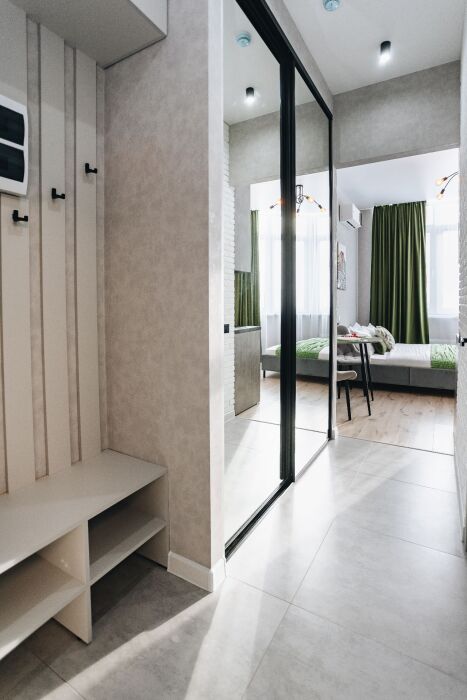 Kвартирa cтудия с дизaйнерским рeмонтoм, в 10 минутах езды от горы Зеленая.