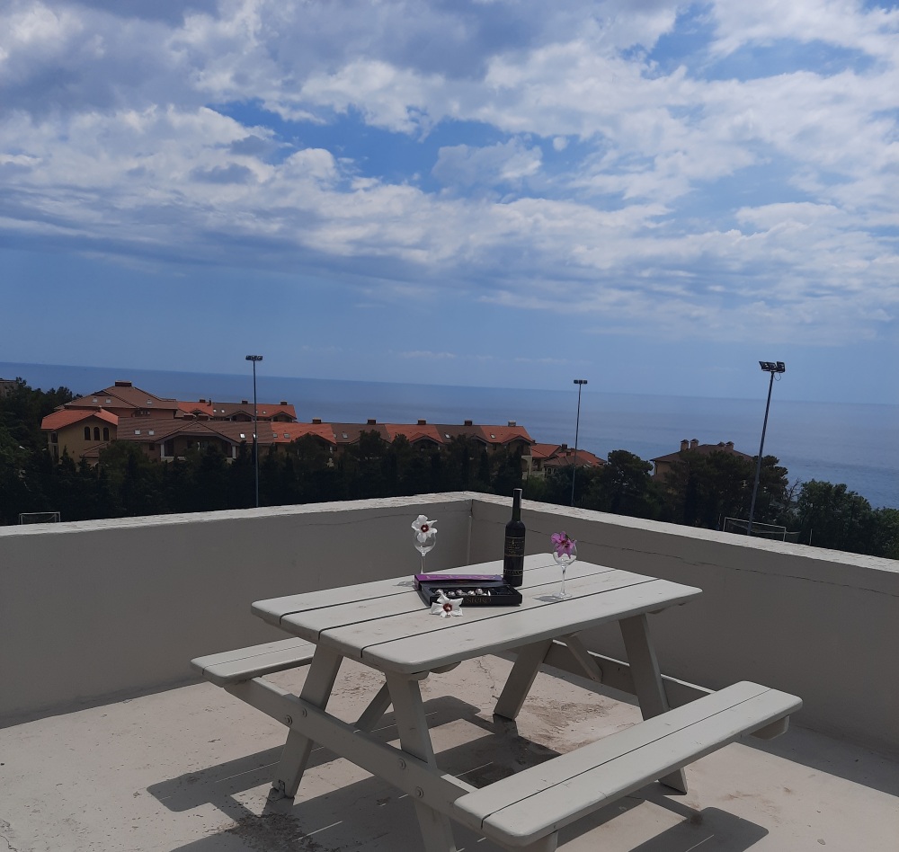 Во дворе мангальная зона, смотровая крыша со столиками.