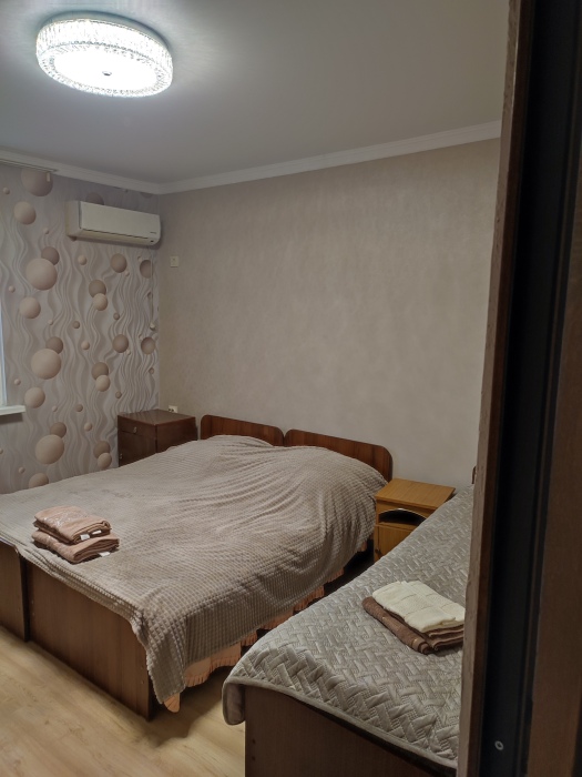 - 4 спальни: из них две 3-местные и две 2-местные, в трёх спальнях - кондиционеры, в одной двухместной - вентилятор.