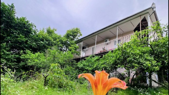 Хорошая локация - 900 м от рынка и ж/д вокзала Нового Афона, 20 м до кафе «Псырцха», 100 метров до остановки автобусов и магазина.